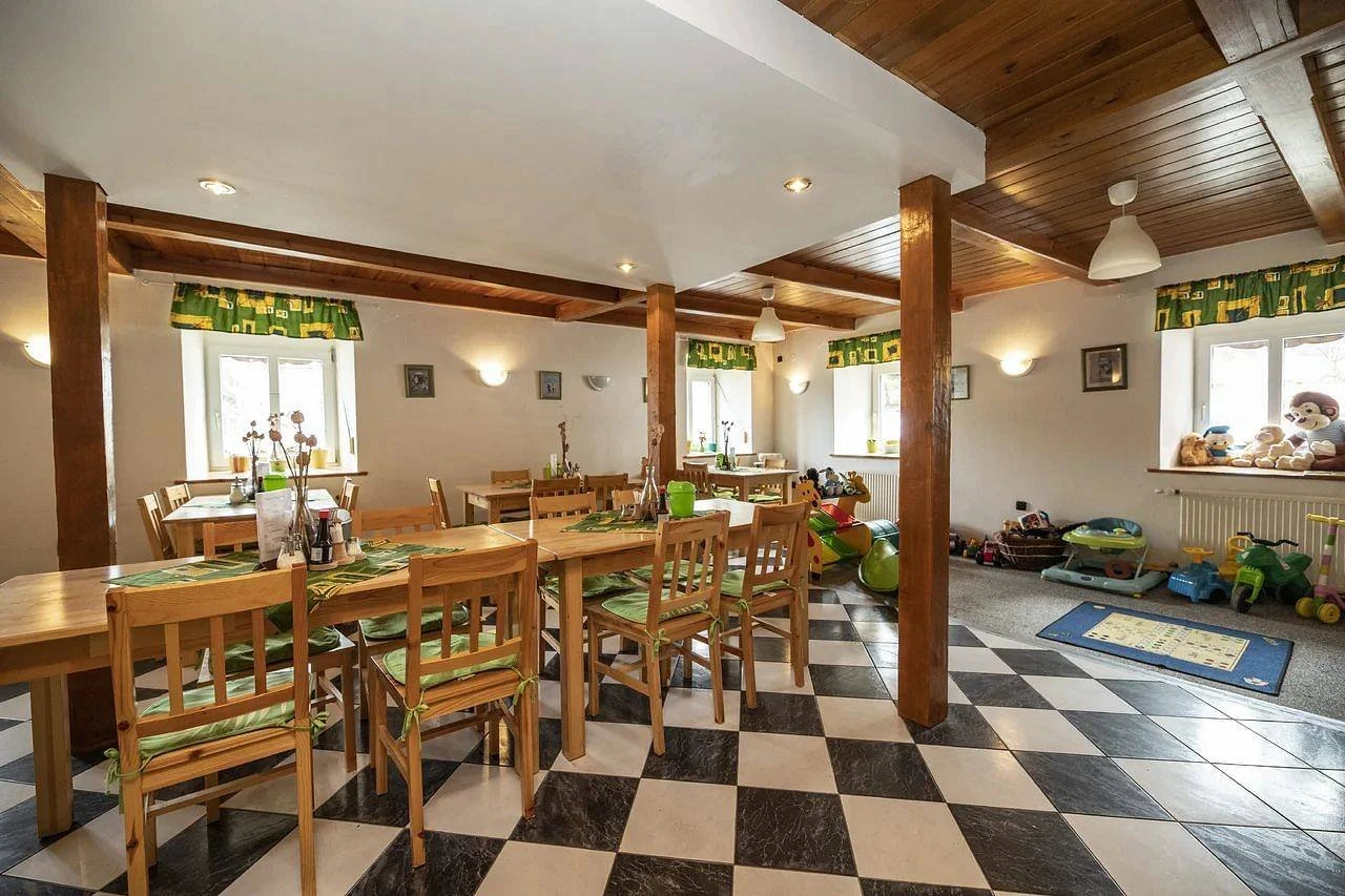 Penzion je nekuřácký a nabízí společenskou místnost, dětský koutek, terasu s posezením a vnitřní bazén. Pro děti jsou k dispozici jídelní židličky, postýlky, nočník a vanička. Hosté mohou využít možnost vlastního vaření, přičemž kuchyně je vybavena elektrickým sporákem s troubou, mikrovlnnou troubou, kompletním nádobím, rychlovarnou konvicí a nářezovým strojem. Restaurace se nachází přibližně 100 metrů od penzionu.