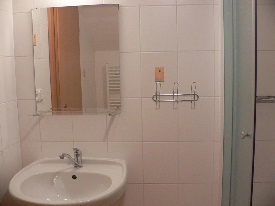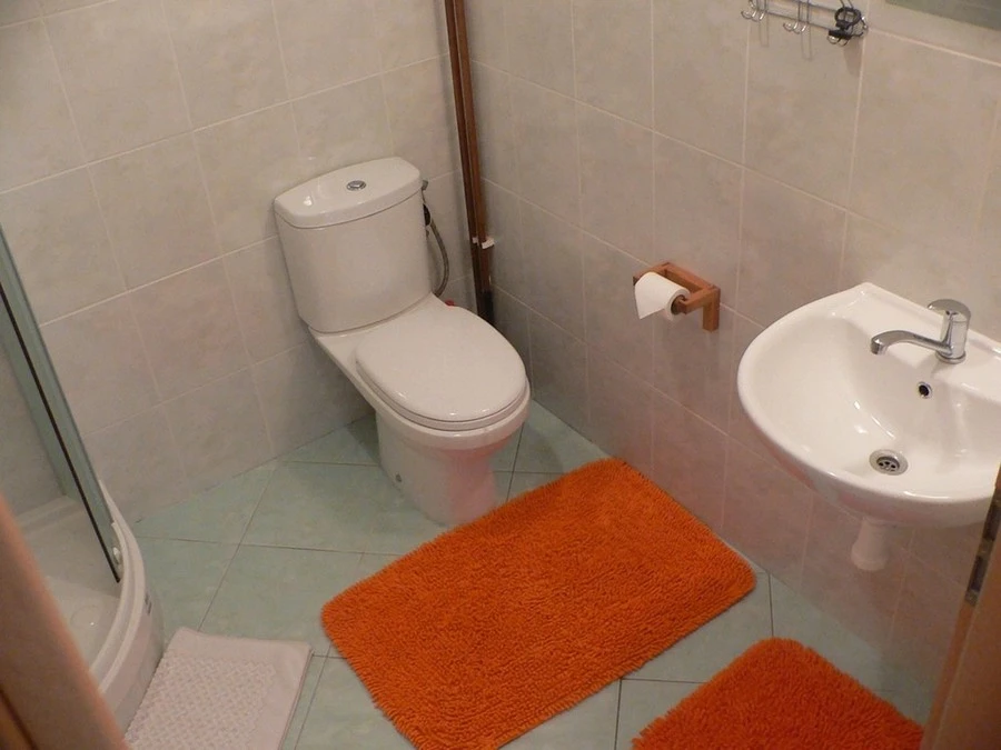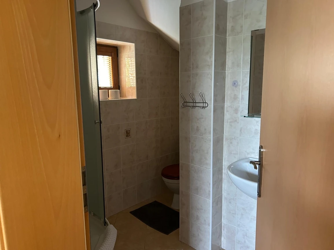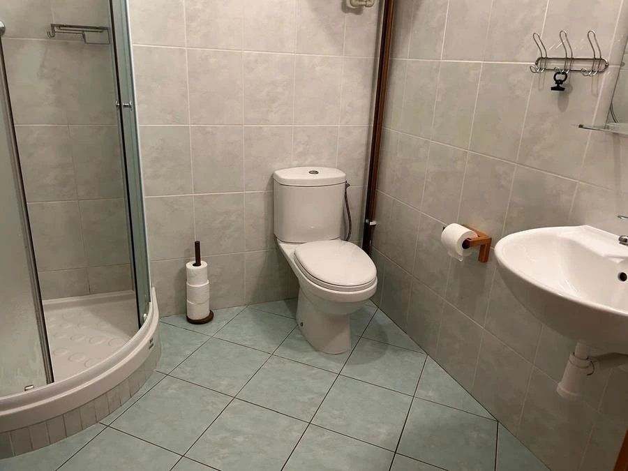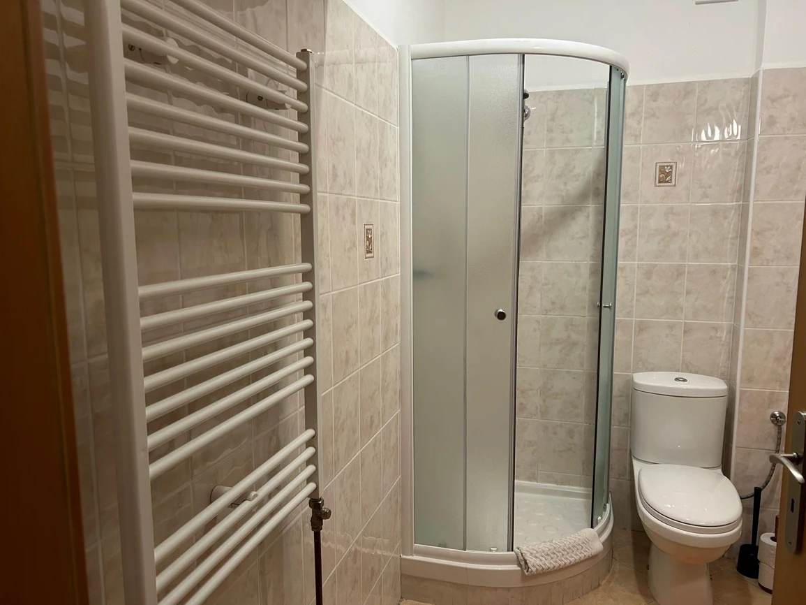 - Koupelna se sprchovým koutem, WC, umyvadlem a sušákem na ručníky