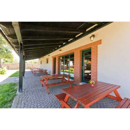 Venkovní prostory zahrnují posezení z obou stran objektu a kolostavy pro kola. K dispozici je bezplatné Wi-Fi připojení a parkování pro osobní automobily, motocykly a dodávky přímo u penzionu. Od září je k dispozici restaurace s možností snídaní a obědů.