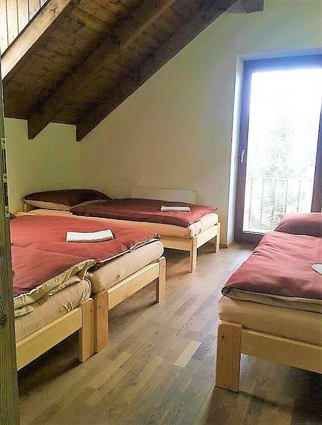 Ubytování je zajištěno v komfortních pokojích s vlastní koupelnou a WC, většina s výhledem do zahrady nebo na les. K dispozici jsou 3 čtyřlůžkové pokoje a jeden dvoupodlažní mezonetový apartmán pro 10 osob. Celková kapacita činí 22 lůžek s možností 2 přistýlek, tedy až 24 osob.