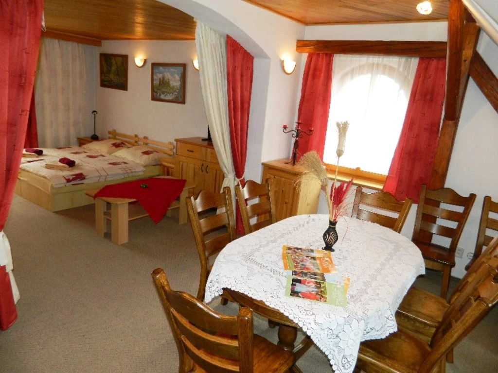 - Apartmán Vlasta: Studio s krbem a terasou, kapacita 4 osoby.