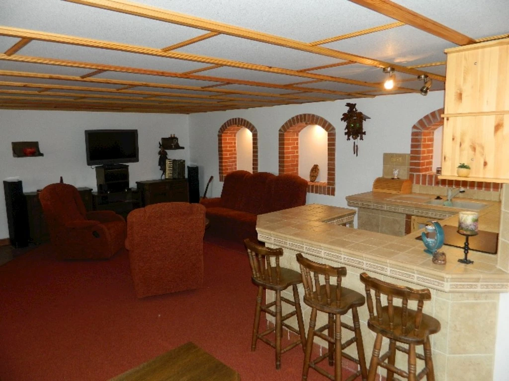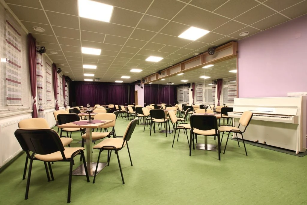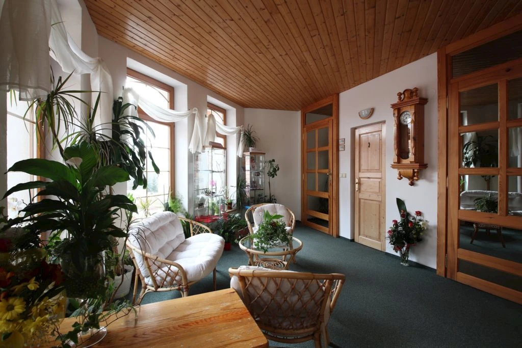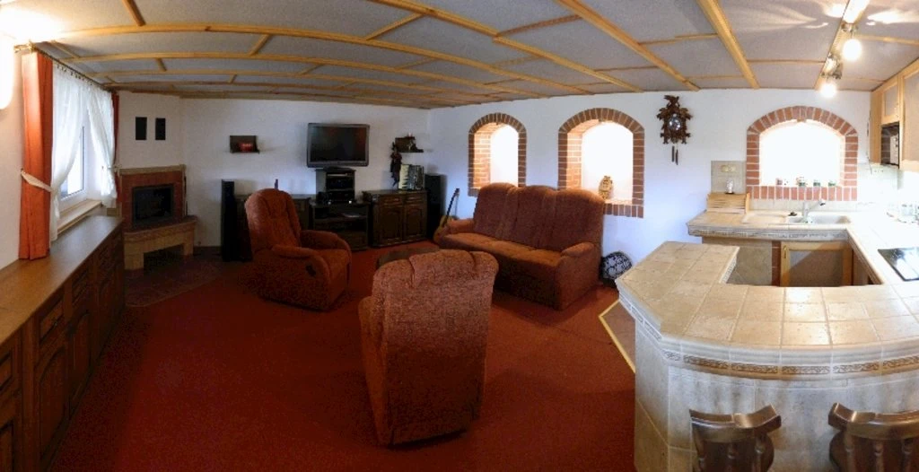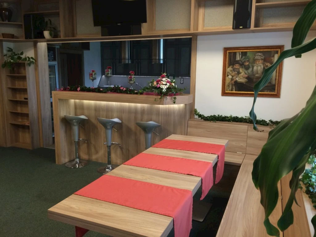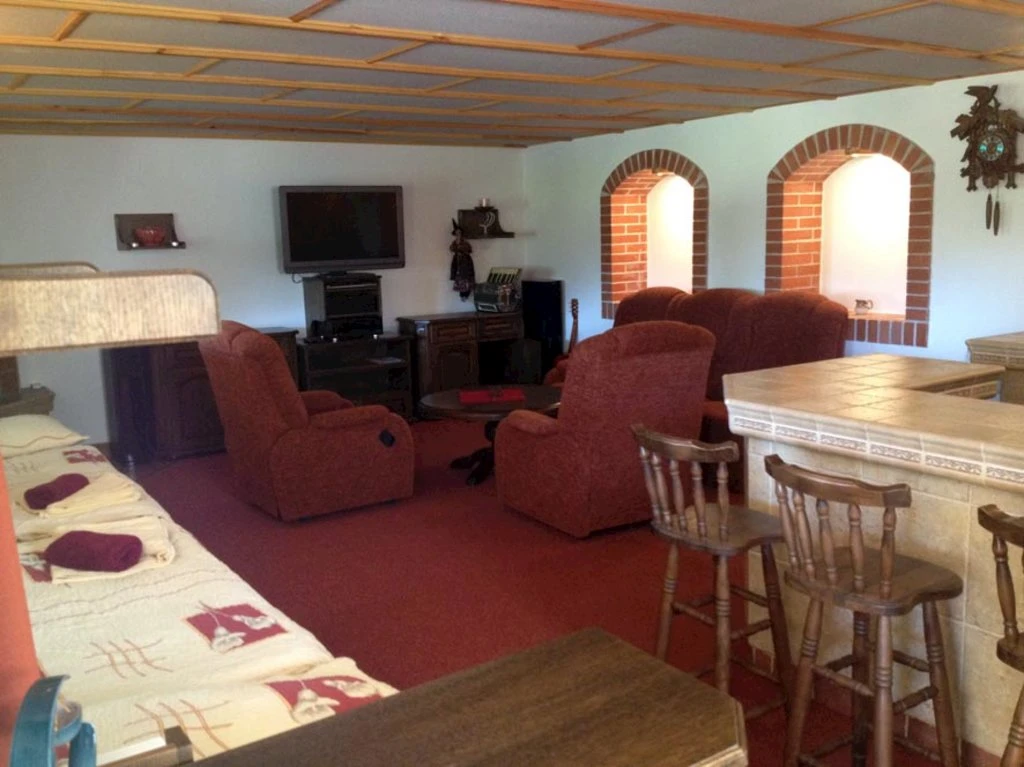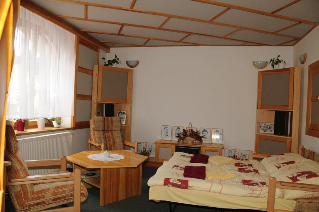 - Společenský sál s barem pro 80 osob, vzdálený cca 100 metrů od penzionu.