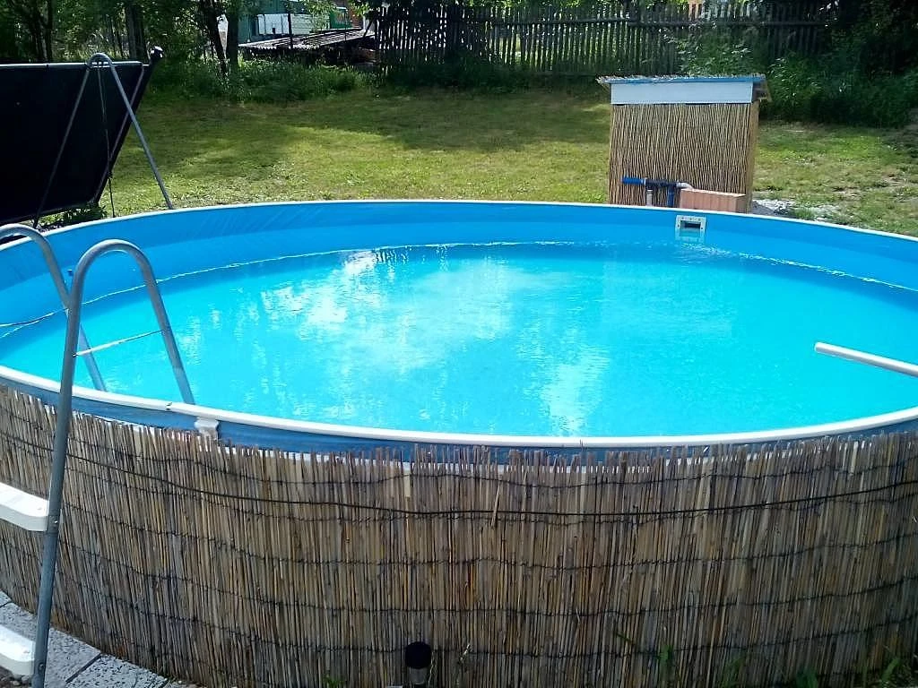 - Venkovní vyhřívaný bazén (6 × 3 m, hloubka 120 cm) a dětský kruhový bazén (4,6 m, hloubka 90 cm)