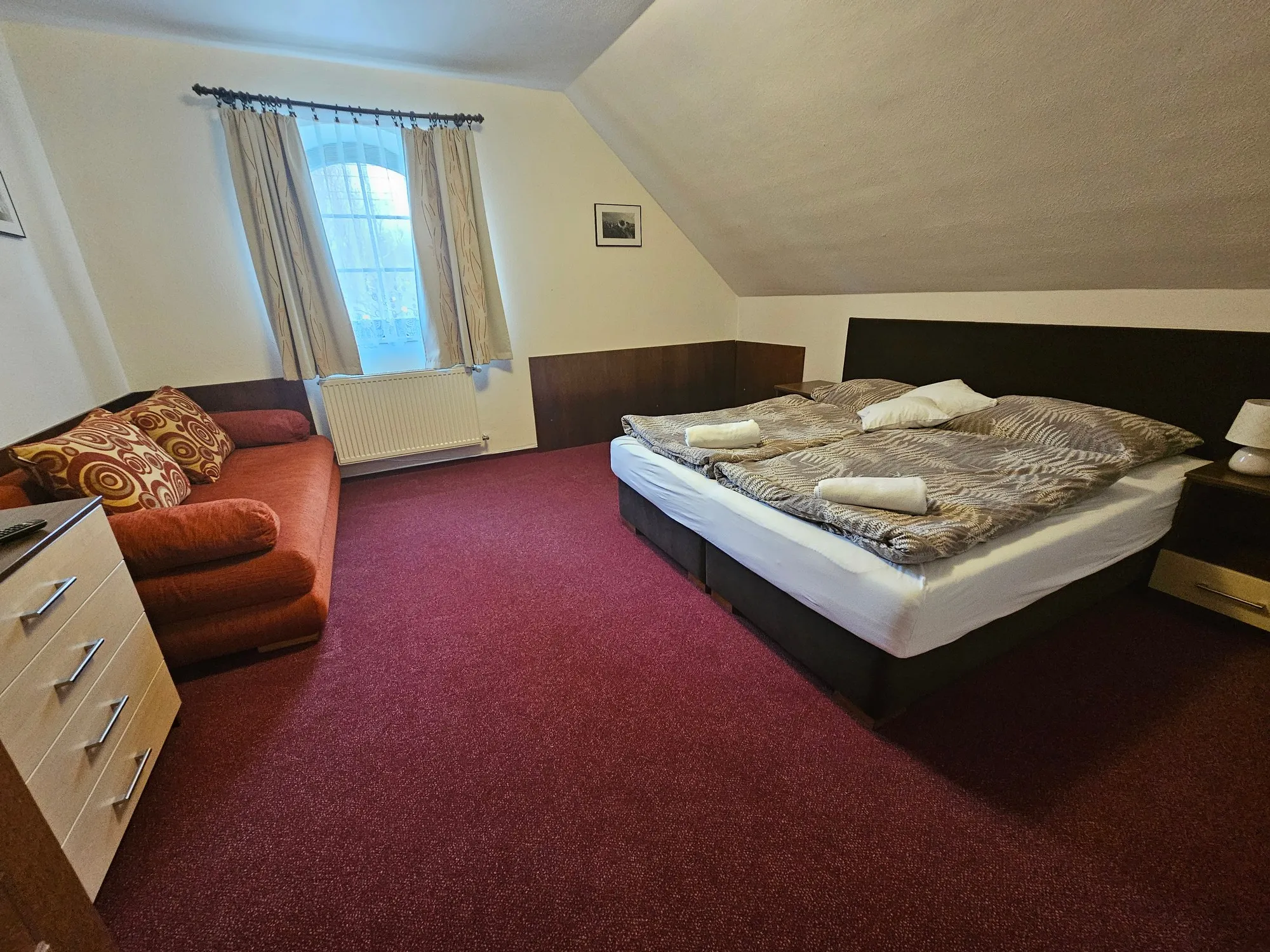 Útulný dvoulůžkový pokoj je ideální volbou pro páry nebo jednotlivce hledající pohodlí a klid.