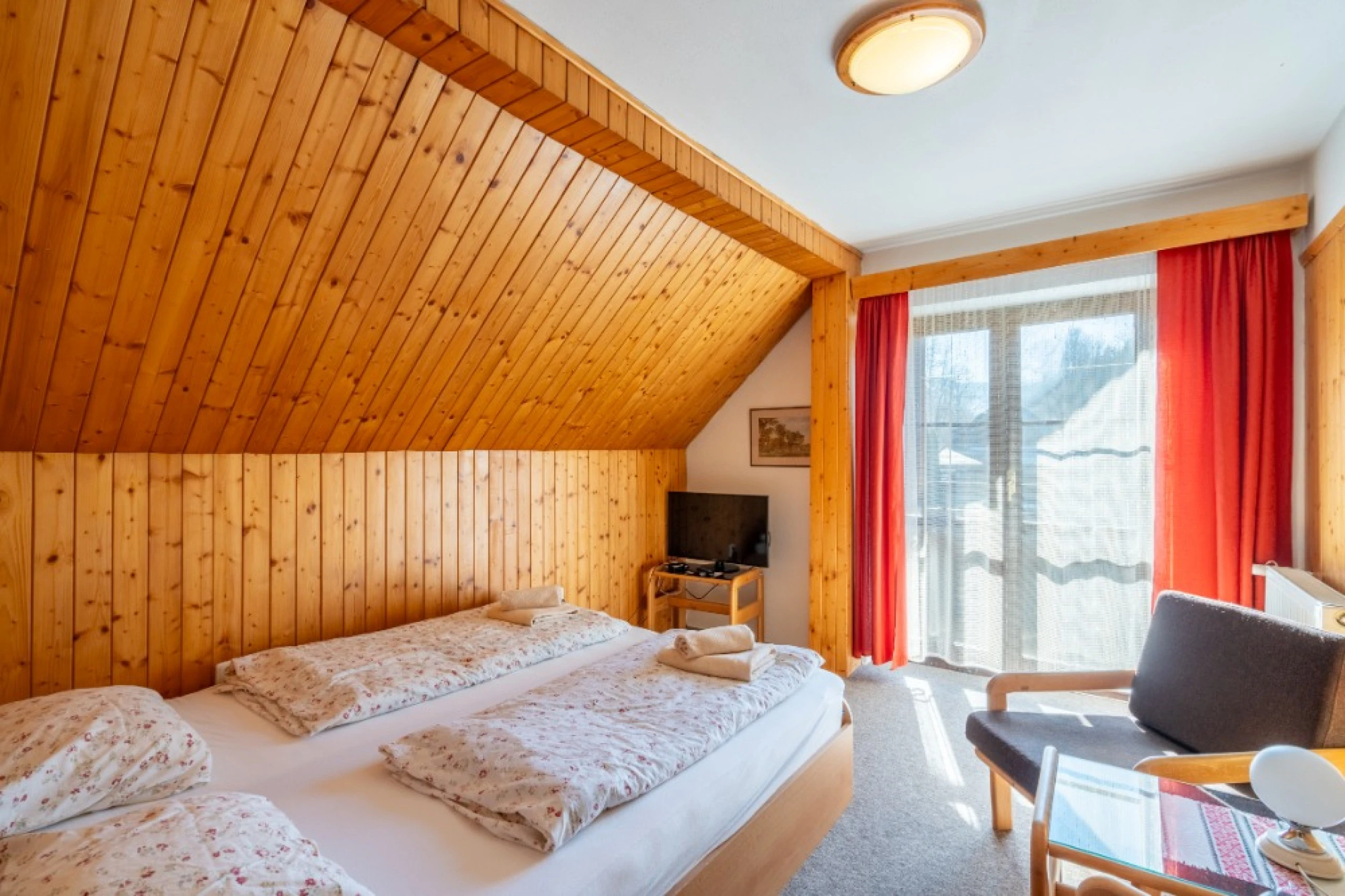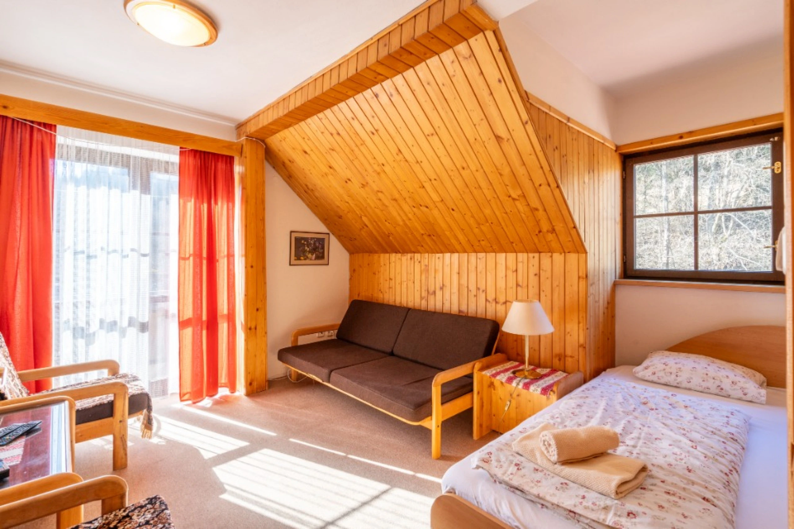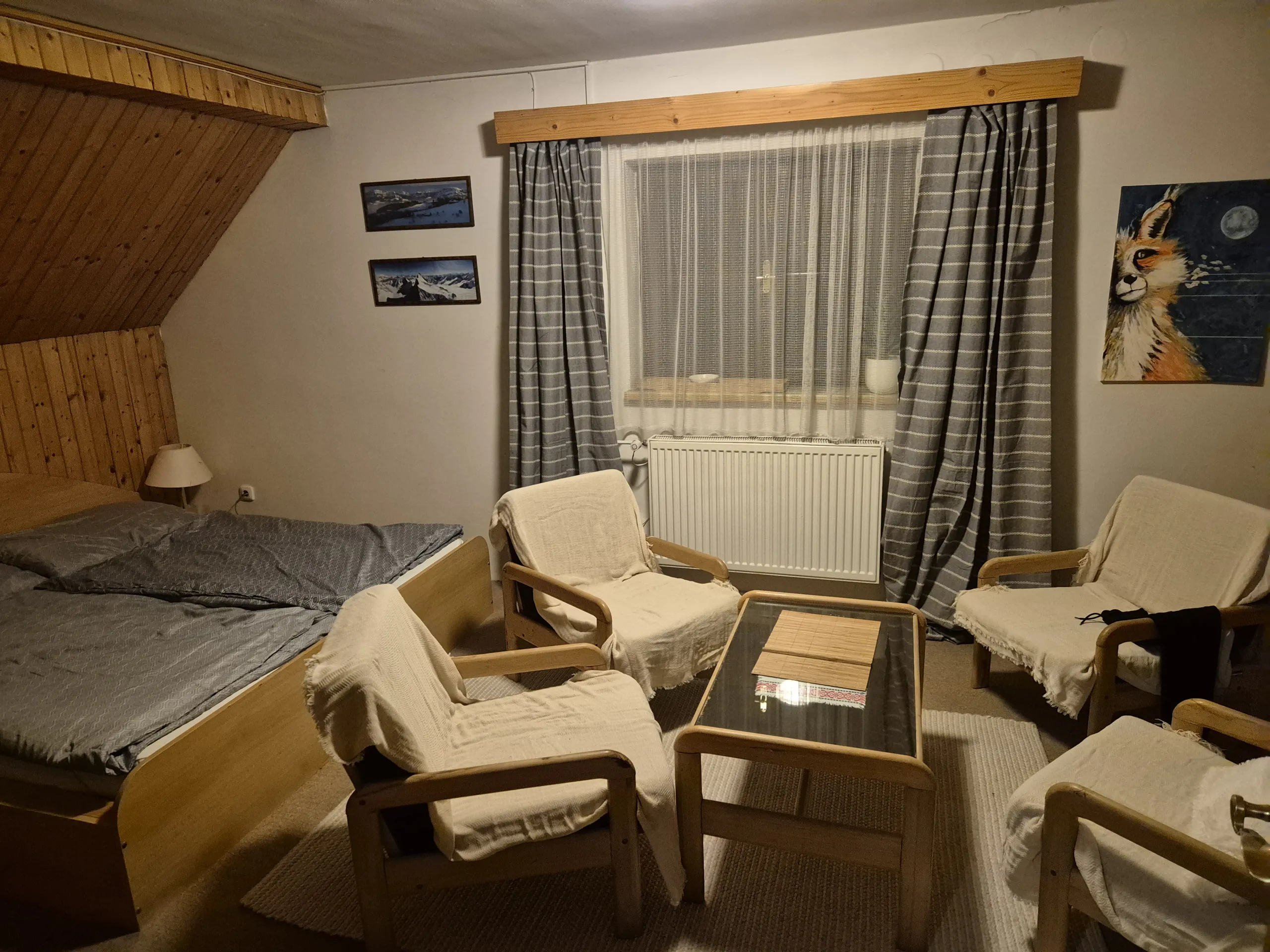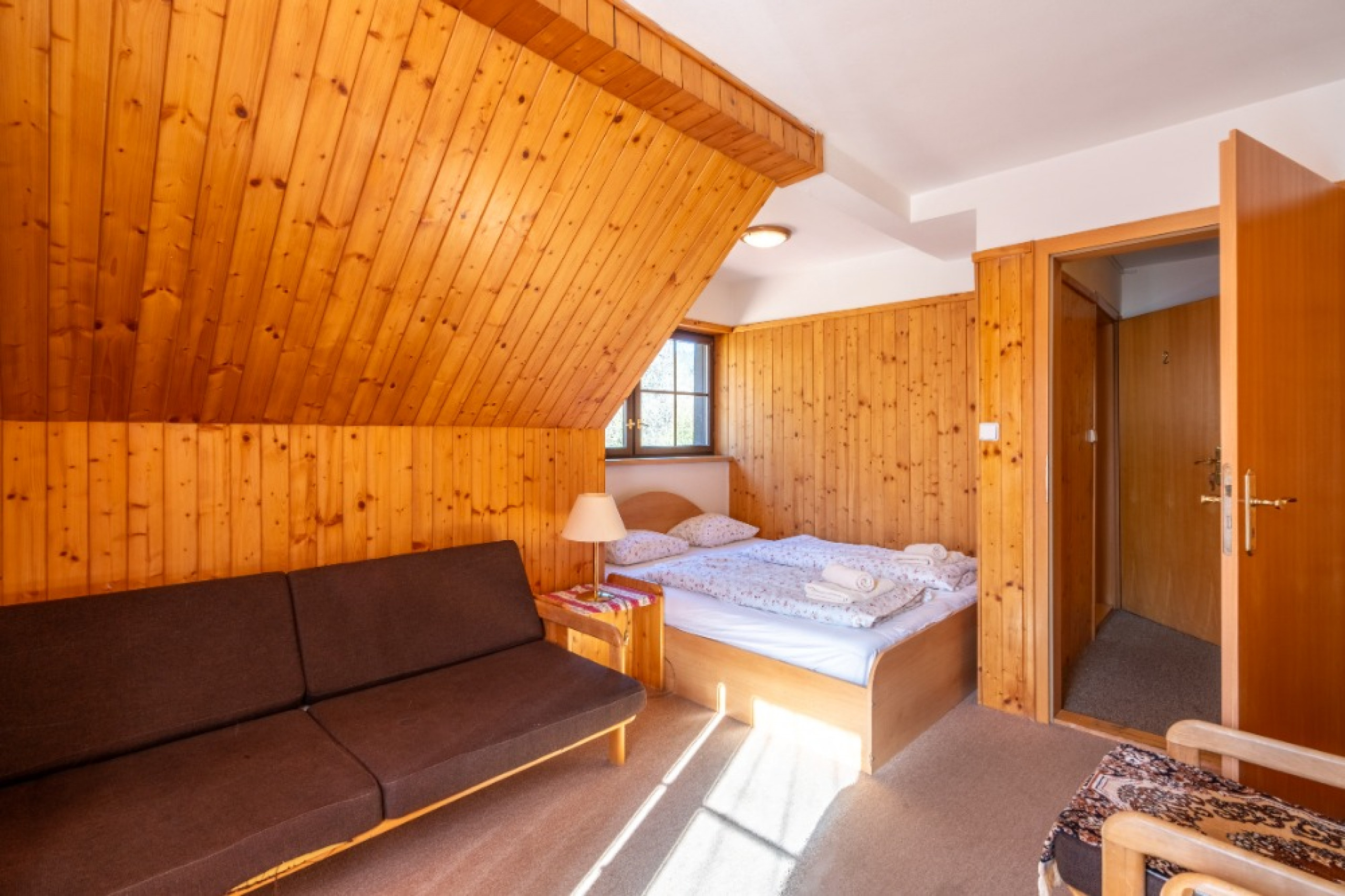 - Apartmán 3 – jeden pokoj pro 4 osoby, manželská postel s přistýlkou