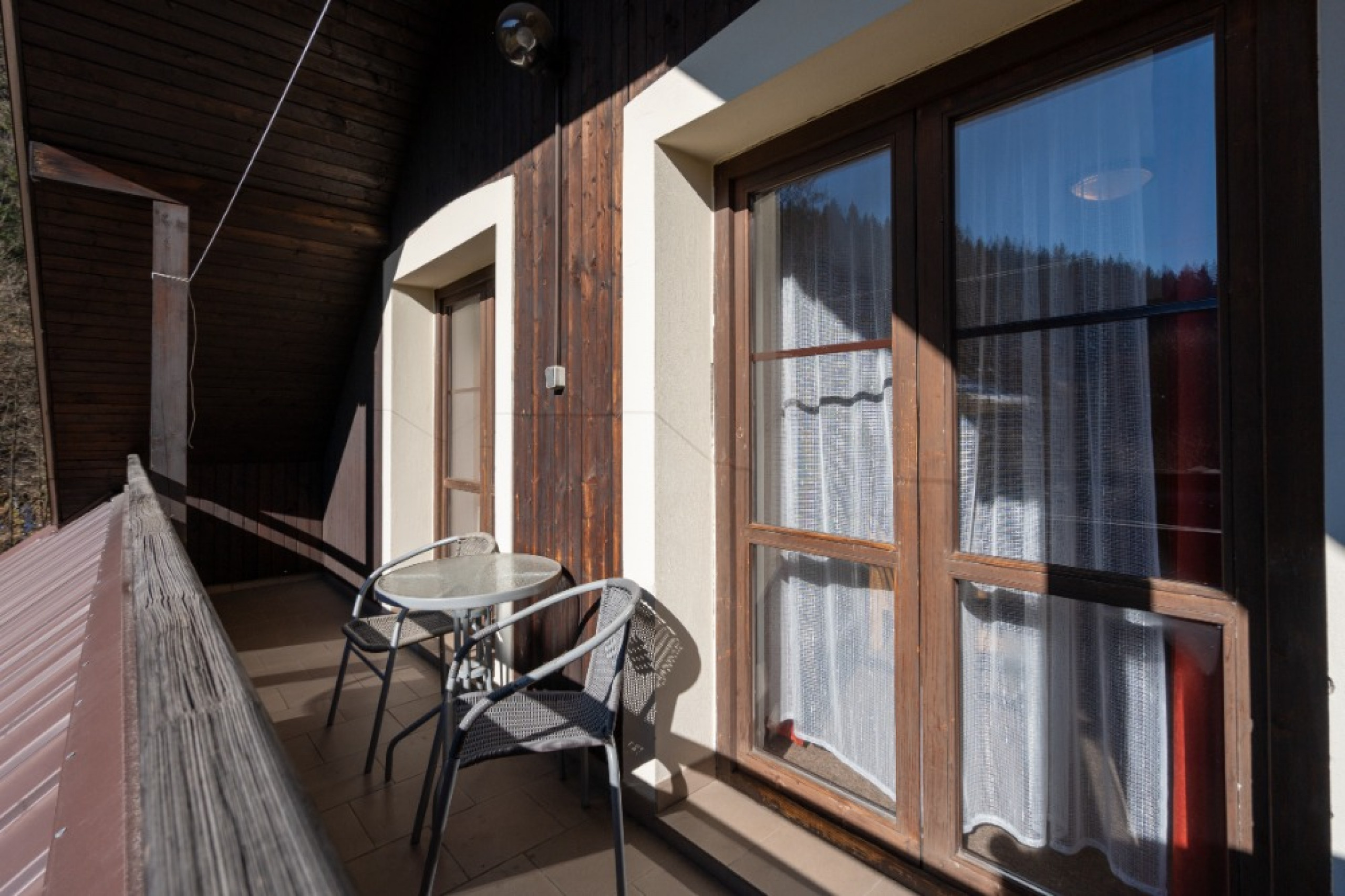 - Vybavení: koupelna se sprchovým koutem, WC, balkon s posezením, televize, Wi-Fi
