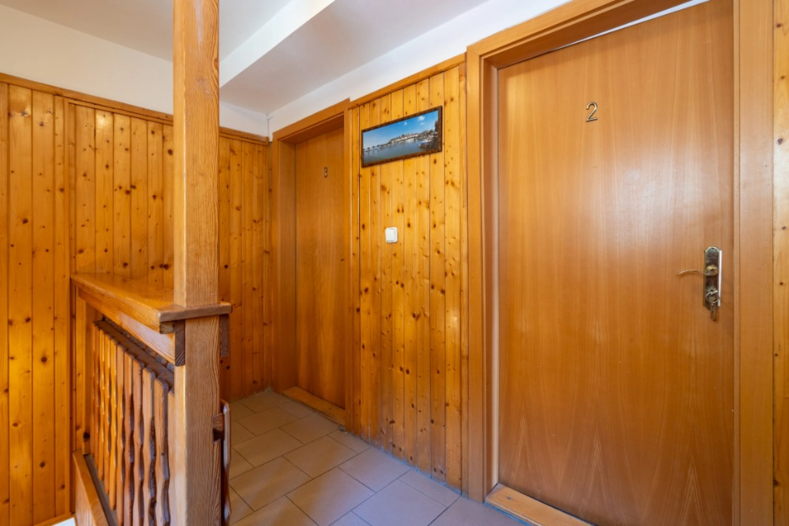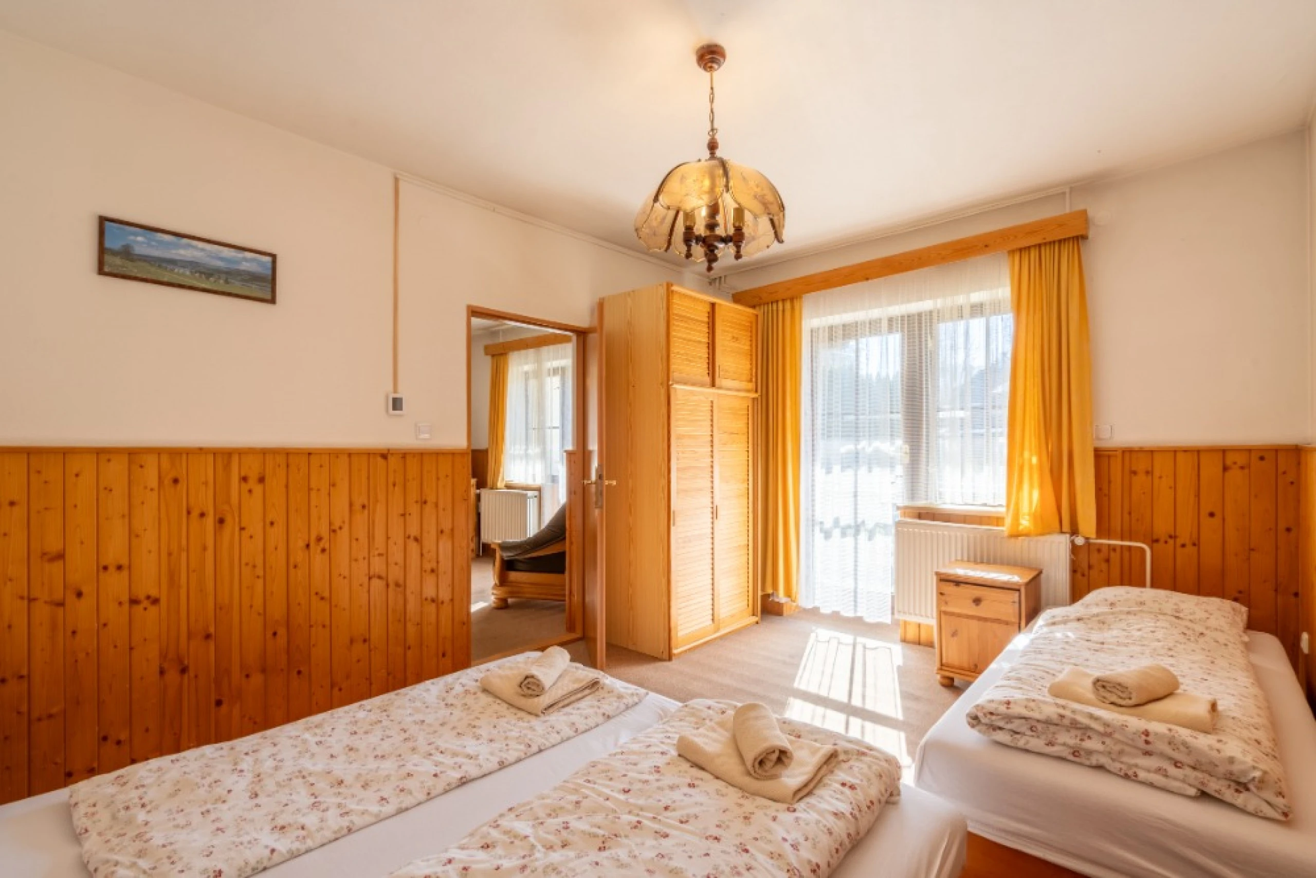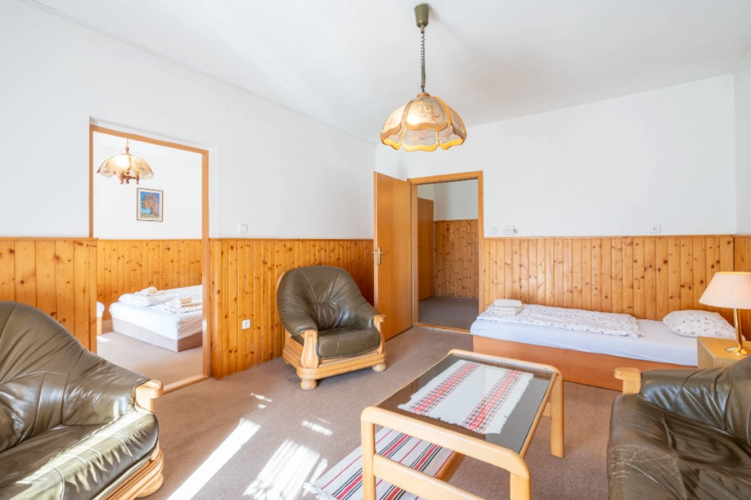 - Apartmán 1 – 1 manželská postel a 3 rozkládací pohovky ve třech pokojích, kapacita 4–8 osob