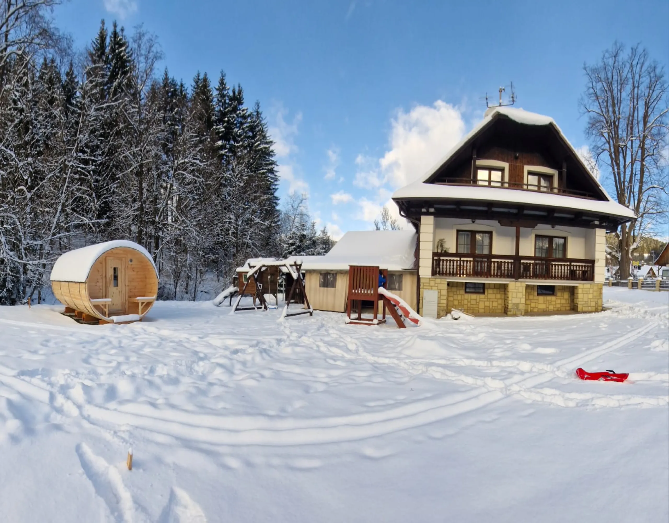Penzion nabízí komfortní ubytování pro rodiny a skupiny, vhodné pro turistiku, cyklovýlety i zimní sporty. Areál je uzavřený, což zajišťuje bezpečné prostředí pro děti a klidný pobyt pro dospělé. K dispozici je altán s ohništěm a grilem, zahrada a prostor pro hry. Kola a lyže lze bezpečně uložit v uzamykatelné úschovně.