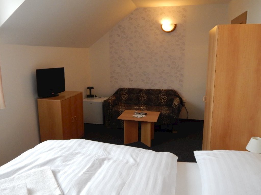 Pokoj je vybaven Wi-Fi připojením k internetu, televizí, ledničkou a rychlovarnou konvicí.