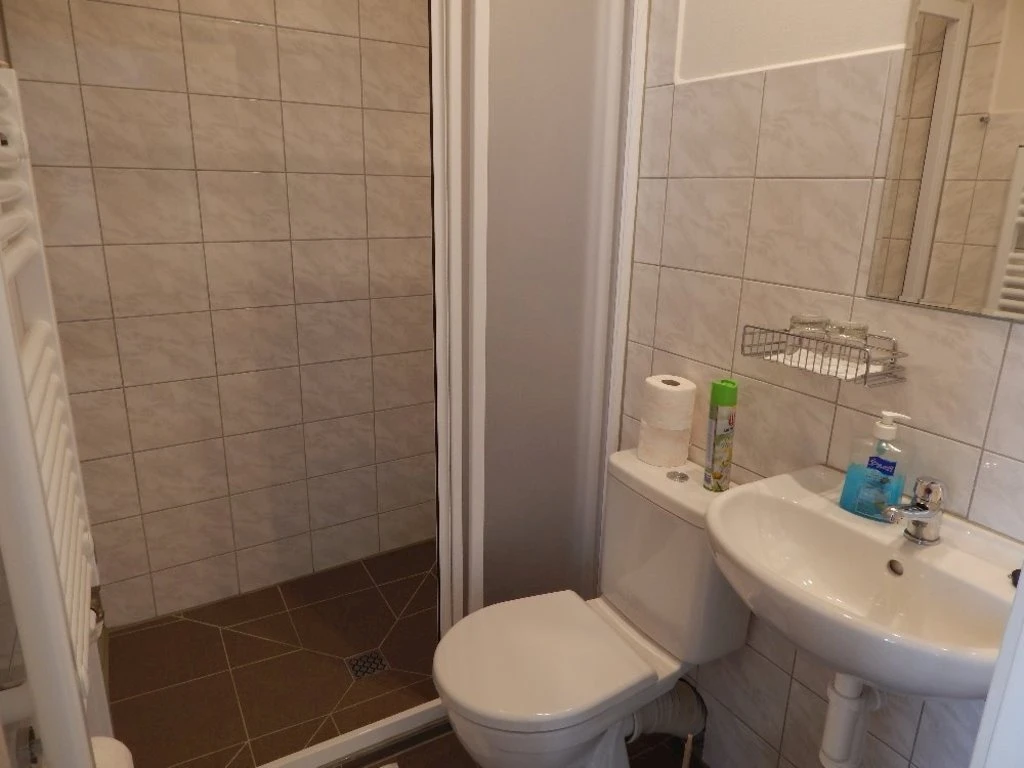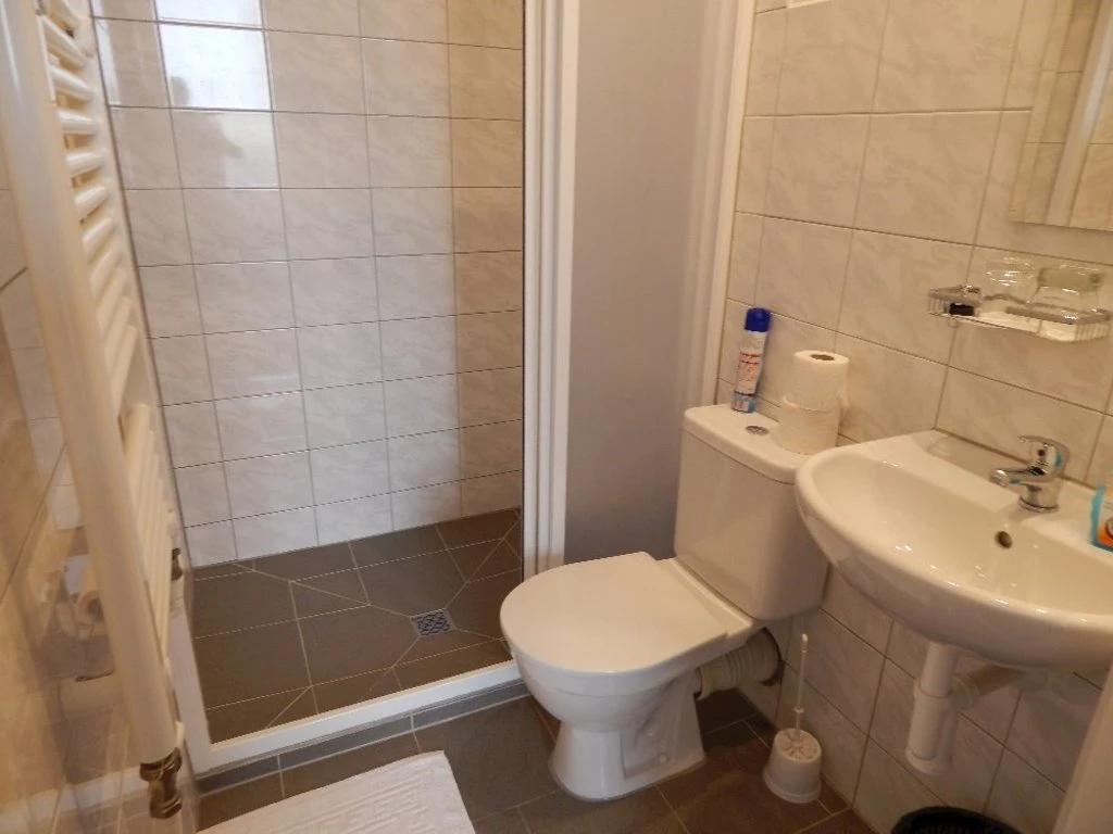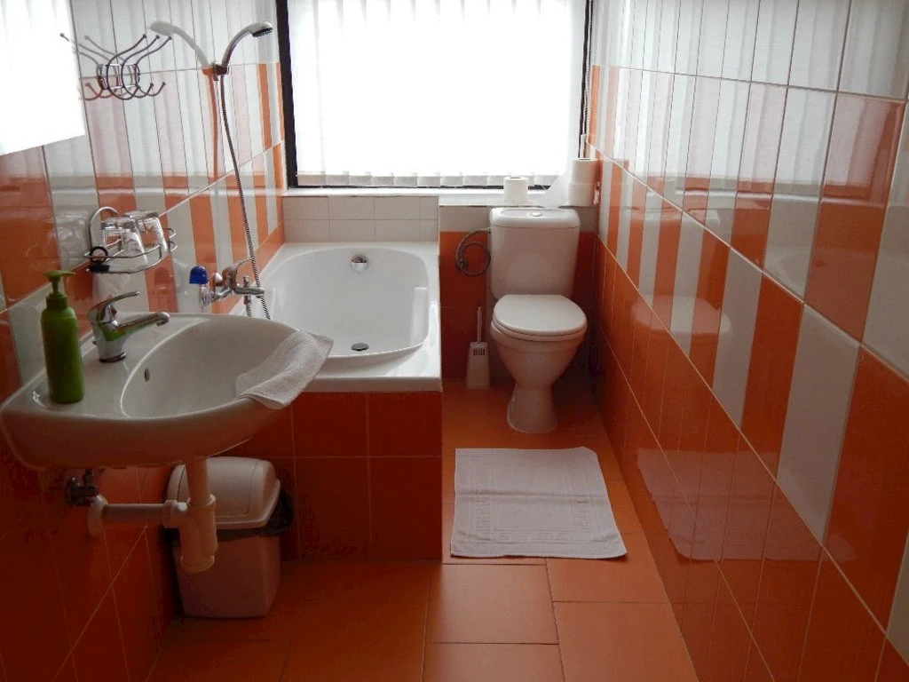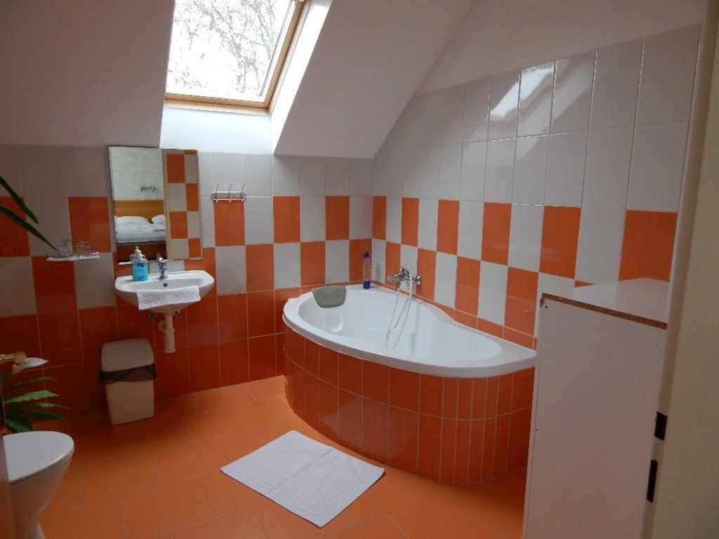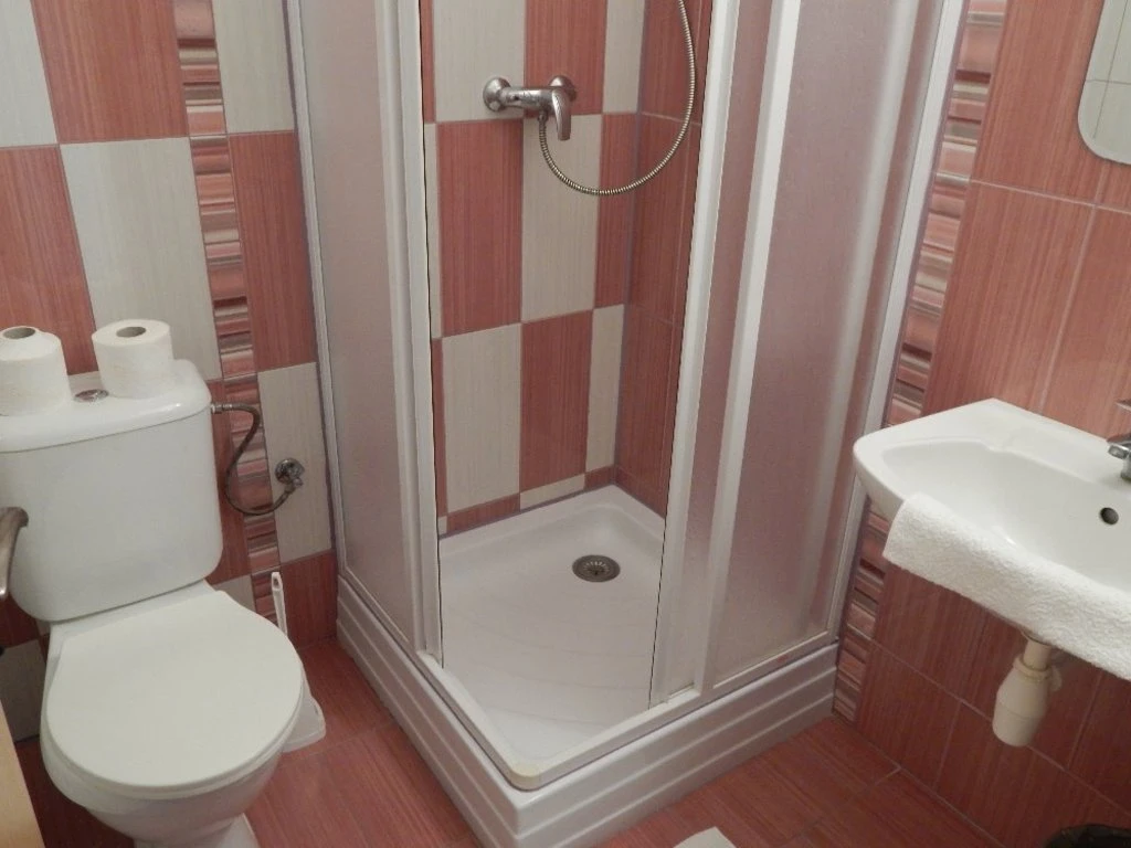 Koupelna je vybavena toaletou, umyvadlem a ručníky. Podle konkrétního pokoje je k dispozici buď sprchový kout, nebo vana.