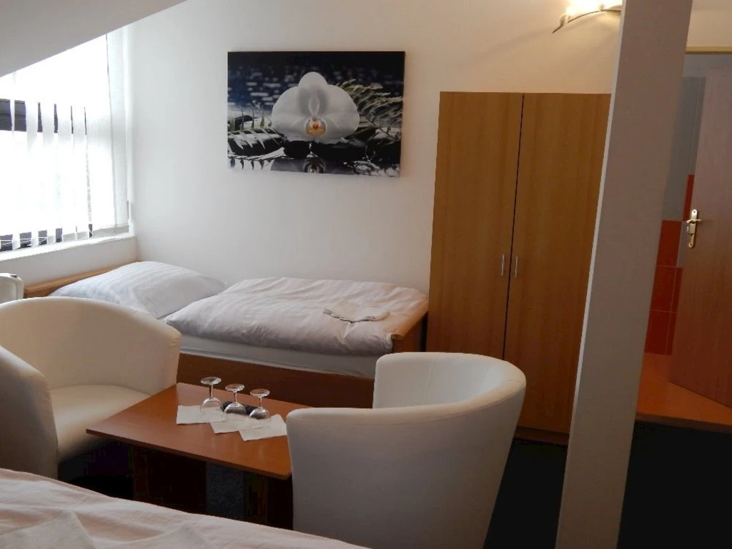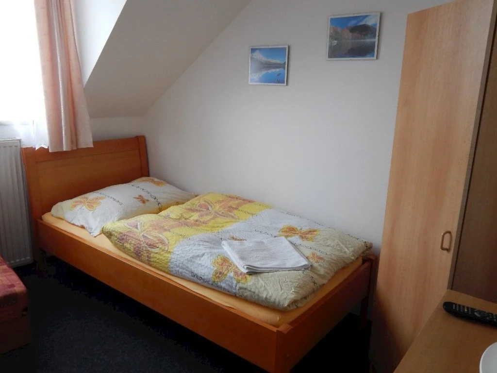 Jednolůžkový pokoj o rozloze 20 m² se nachází v 1. podlaží. Součástí je samostatná ložnice s jednou jednolůžkovou postelí. Pokoj je vybaven Wi-Fi připojením k internetu, televizí, ledničkou a rychlovarnou konvicí.K dispozici je koupelna s toaletou, sprchou, umyvadlem a ručníky.