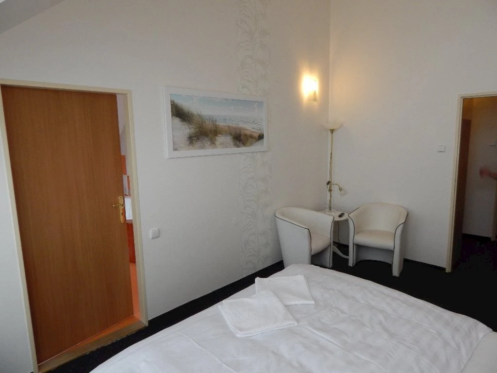 Dvoulůžkový pokoj o rozloze 20 m² se nachází v 1. podlaží (k dispozici je osm pokojů tohoto typu). Součástí je ložnice s manželskou postelí, kterou je možné rozdělit na dvě samostatná lůžka.