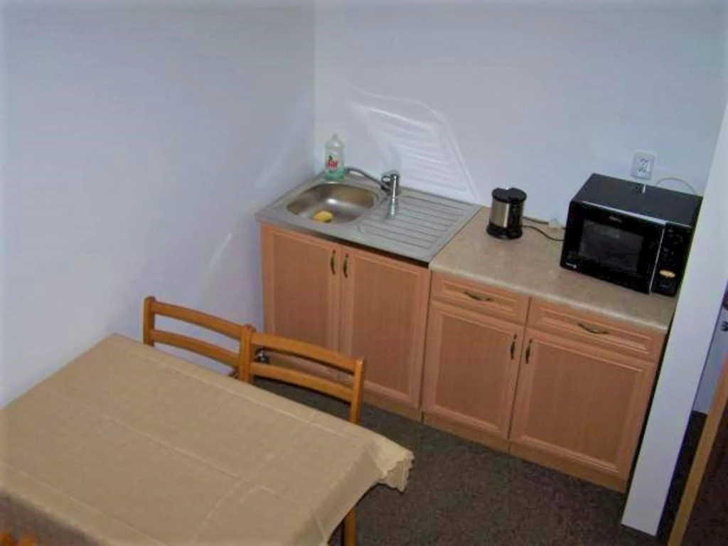 Prostorný a pohodlný mezonetový apartmán je ideální pro čtyři osoby. V ložnici najdete dvě jednolůžkové postele, které lze spojit do dvoulůžka, a jednu manželskou postel. Apartmán disponuje vlastní koupelnou se sprchou, toaletou, umyvadlem, fénem a ručníky.Obývací prostor je vybaven televizí se satelitem a pohodlným gaučem, který nabízí relaxaci po dni stráveném výlety nebo prací. Kuchyňský kout je plně vybaven – lednička, mraznička, mikrovlnná trouba, rychlovarná konvice, elektrický vařič a jídelní sezení umožňují přípravu vlastních pokrmů.K dispozici je také bezplatné připojení k internetu WiFi. Apartmán je ideální pro rodiny nebo menší skupiny, které hledají komfortní a praktické ubytování s možností vlastního vaření.