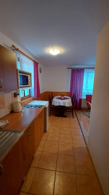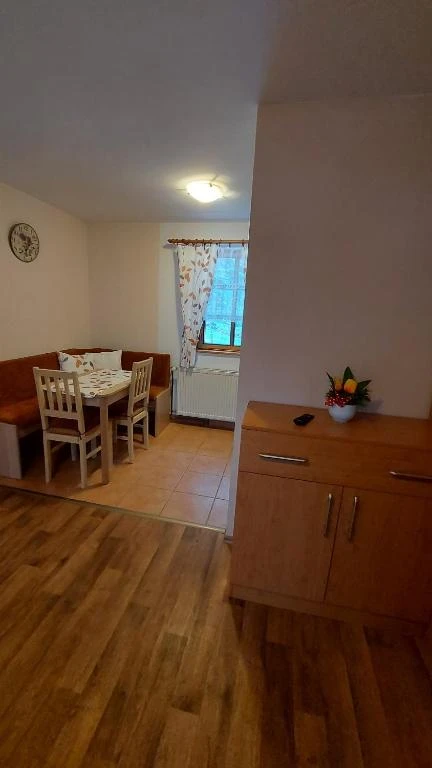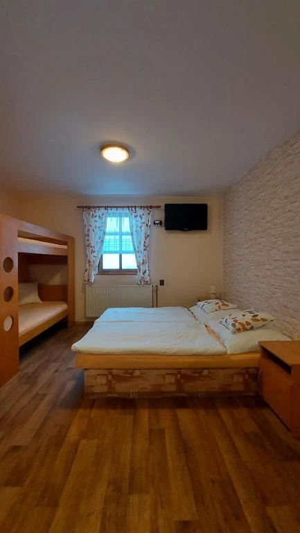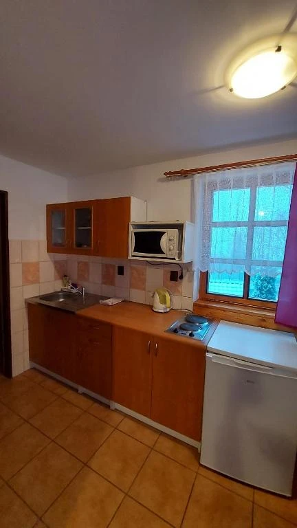 Ubytování nabízí prostorný apartmán vhodný pro 1 až 6 osob. Součástí apartmánu je obývací pokoj s televizí, kde jsou k dispozici 4 lůžka a možnost přistýlky, a samostatná ložnice s manželským dvojlůžkem. K dispozici je kuchyňský kout, který je vybaven malou kuchyňskou linkou, dvouplotýnkovým elektrickým vařičem, mikrovlnnou troubou, rychlovarnou konvicí a lednicí.Apartmán má vlastní koupelnu se sprchovým koutem, umyvadlem a WC. V celém objektu je zajištěno ústřední vytápění, které zajišťuje majitel. Hosté mohou využívat Wi-Fi připojení k internetu zdarma. Ubytování je vhodné jak pro páry, tak pro rodiny či menší skupiny.Ceník ubytováníPočet osobCena za noc1–2 osoby980 Kč3 osoby1 180 Kč4 osoby1 430 Kč5 osob1 500 Kč6 osob1 600 KčCeny jsou uvedeny za celý apartmán a noc. Wi-Fi připojení a vytápění jsou zahrnuty v ceně.