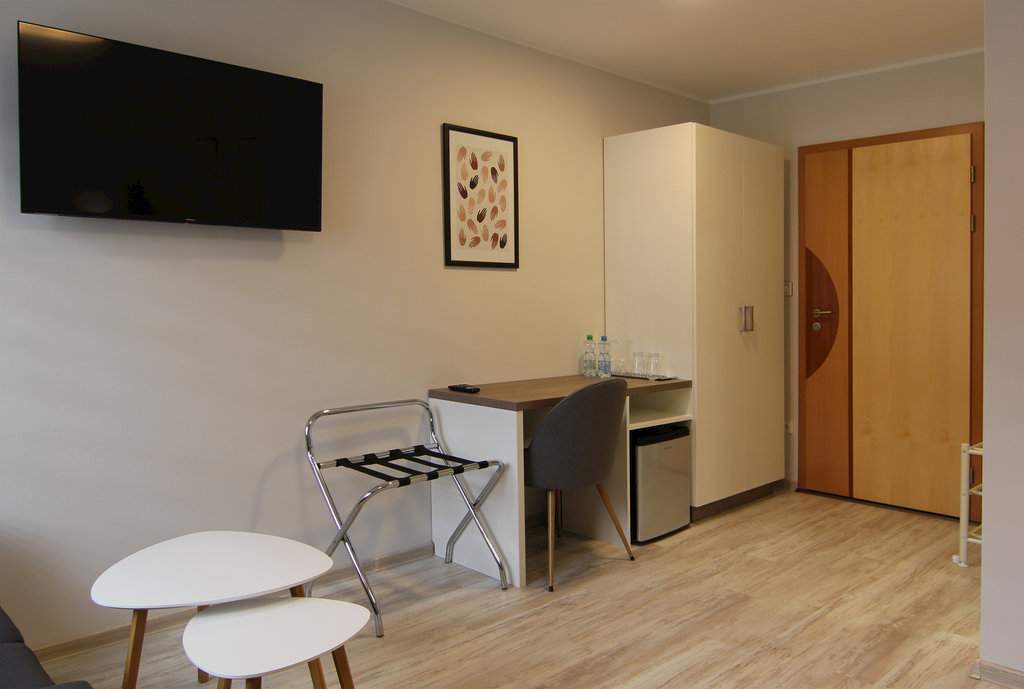 Dvoulůžkový pokoj v penzionu U Vlků ve Valticích je určen pro dvě osoby a nachází se v přízemí. Pokoj má rozlohu 18 m² a tvoří jej jedna ložnice s manželskou postelí a pohovkou. Součástí vybavení je Wi-Fi připojení, televize, lednička, klimatizace, pracovní stůl a síťka proti komárům. K pokoji náleží vlastní koupelna se sprchou, toaletou, umyvadlem, fénem a ručníky. Pokoj je vhodný pro krátkodobé i vícedenní pobyty.