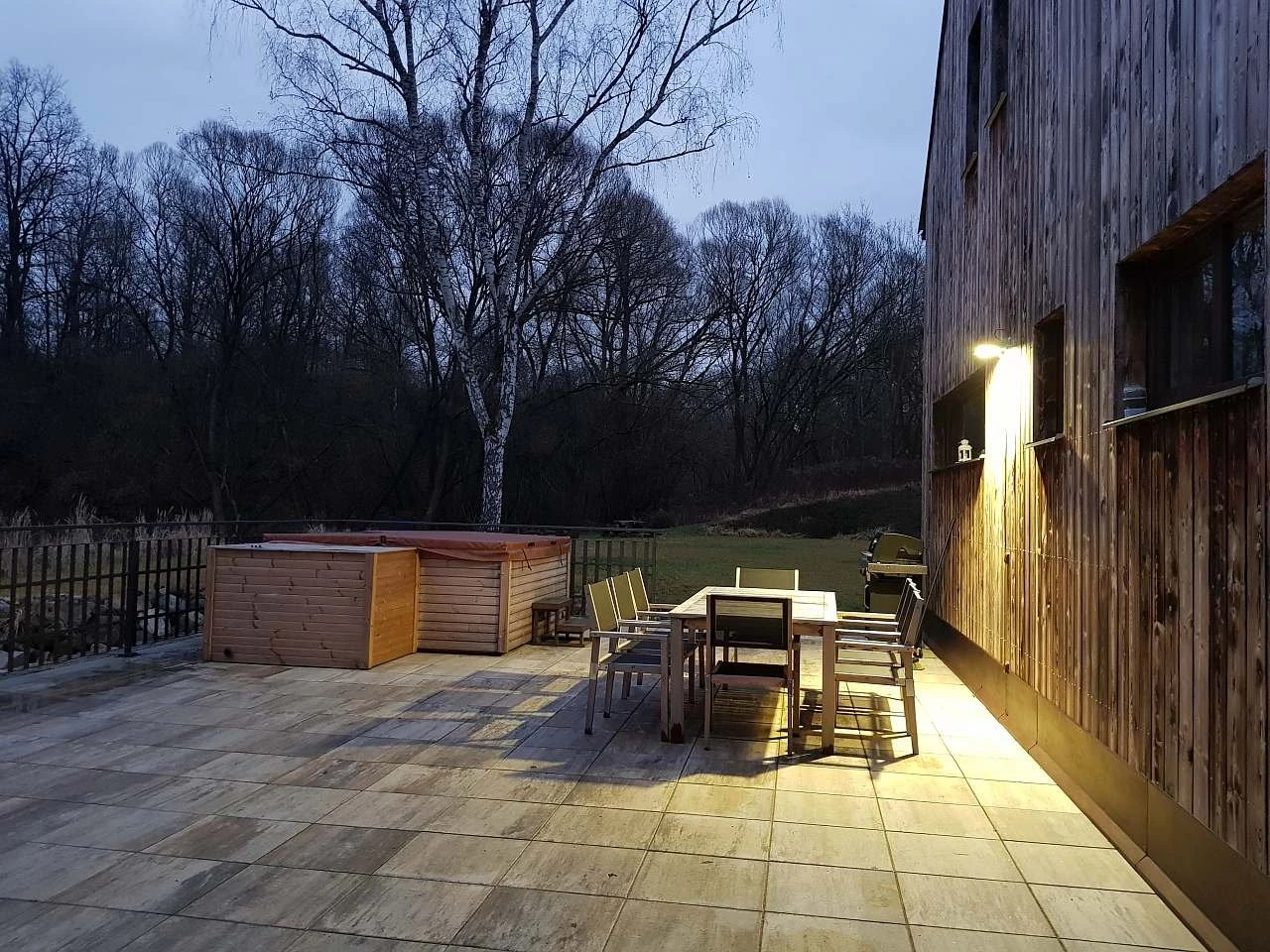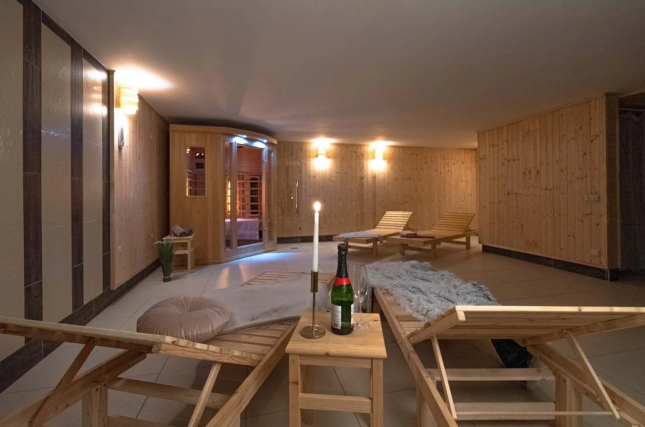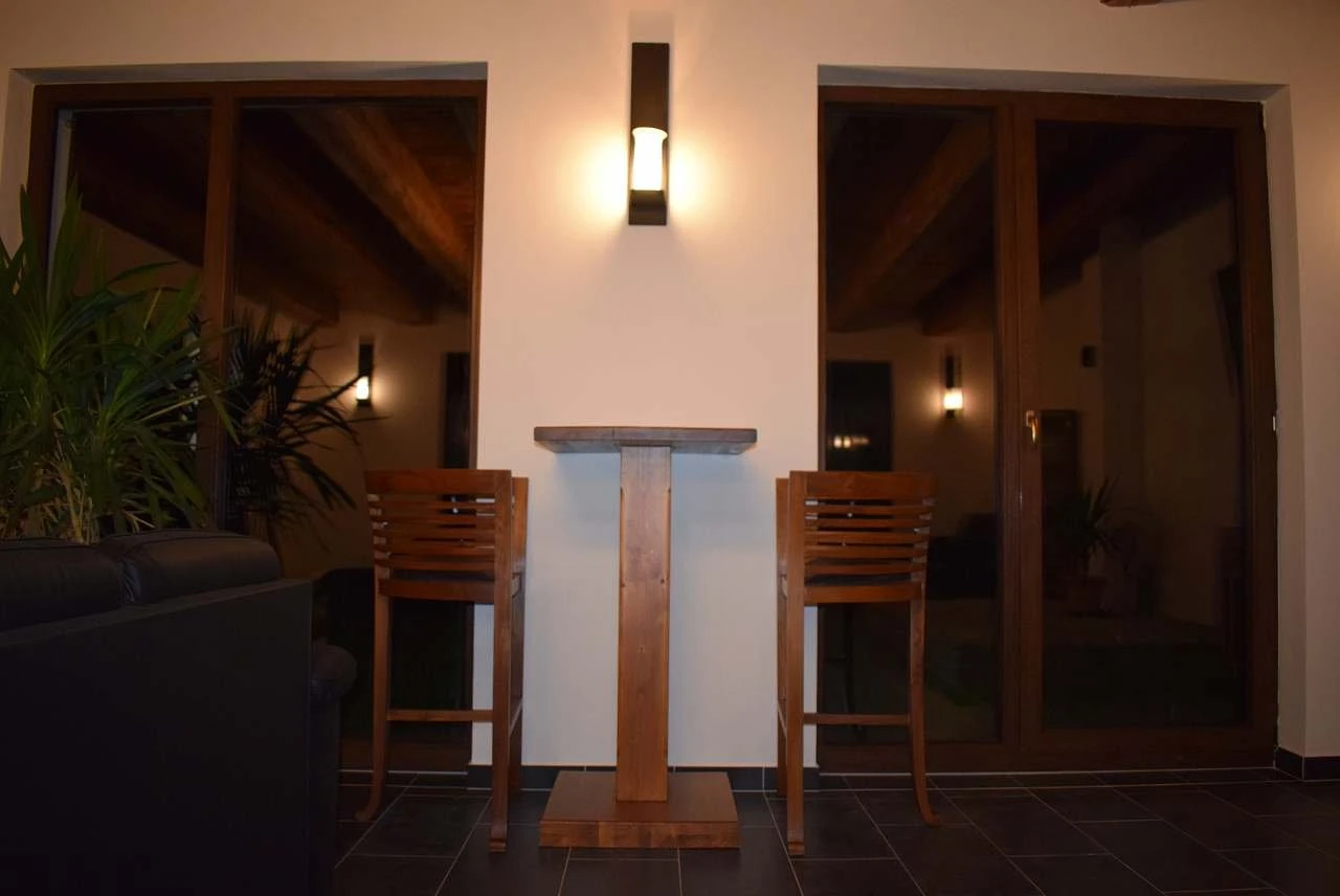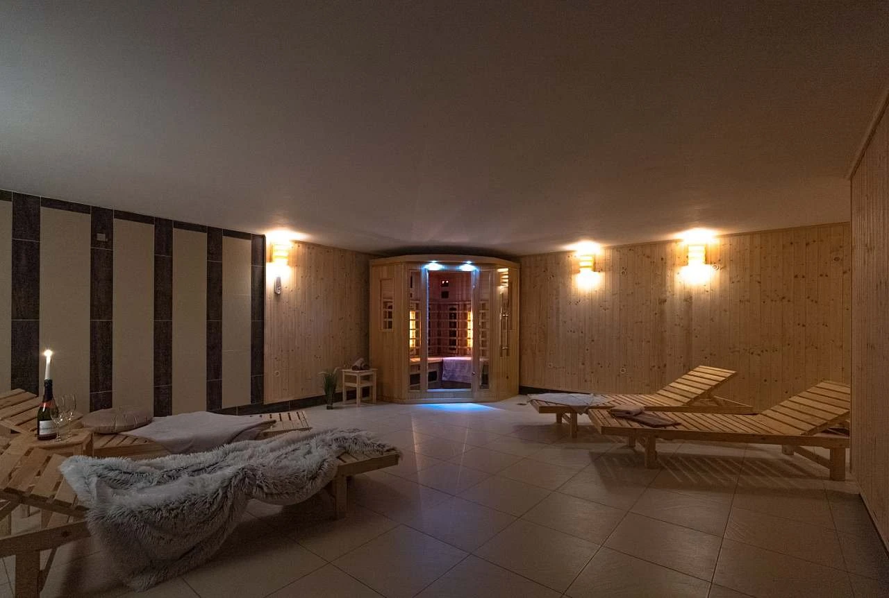 - Wellness: vířivka na terase, infrasauna, relaxační zóna, 2 sprchy, LED osvětlení.
