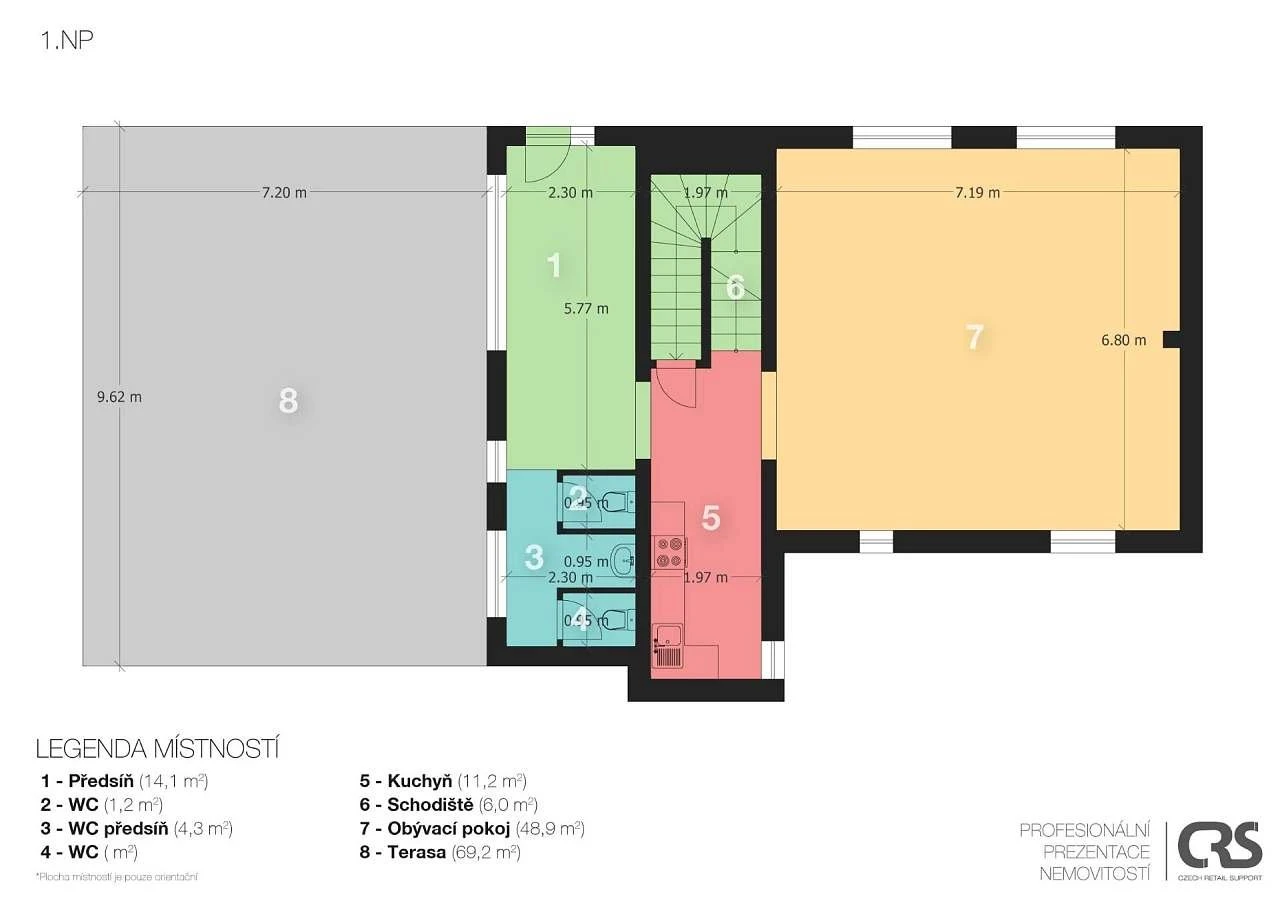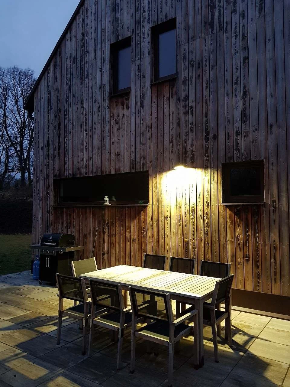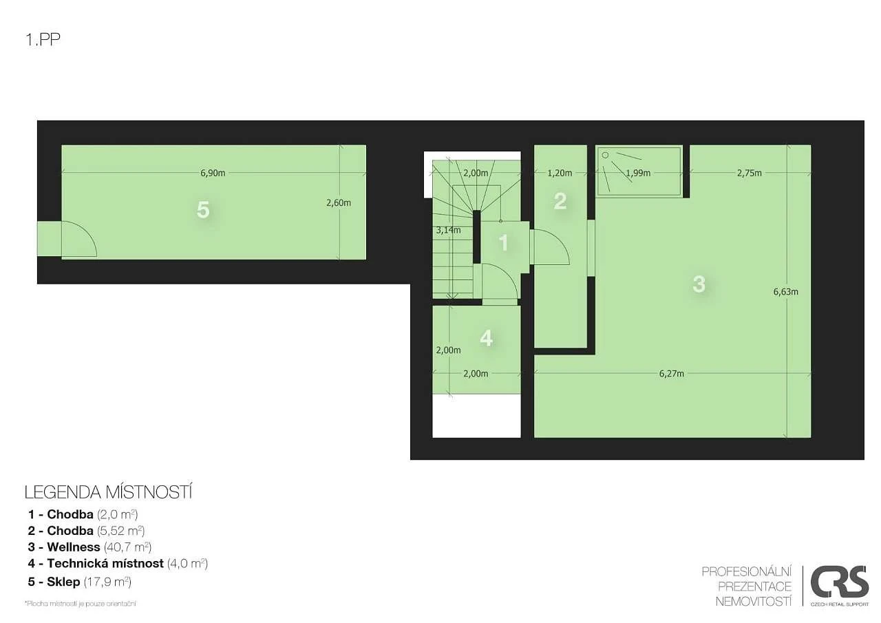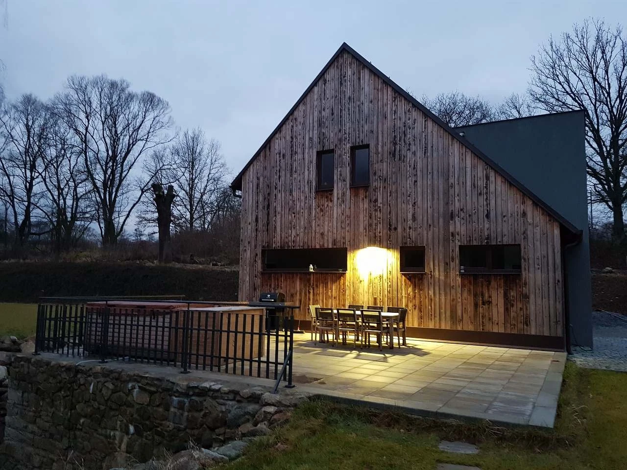 - Wellness: vířivka na terase, infrasauna, relaxační zóna, 2 sprchy, LED osvětlení.