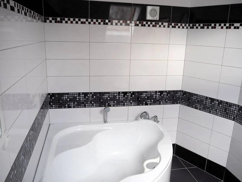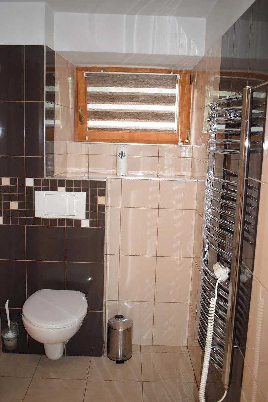 V přízemí je koupelna se sprchovým koutem, umyvadlem a toaletou. Horní koupelna má rohovou vanu, umyvadlo a toaletu.