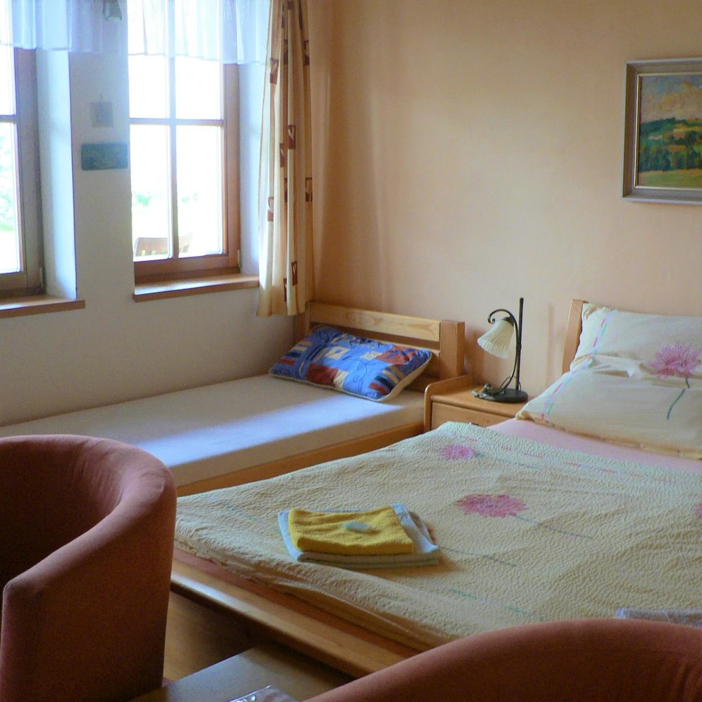 | Třílůžkový pokoj | 1 500 Kč | 500 Kč / osoba / noc | v sezóně celý pokoj / mimo sezónu dohodou |