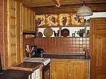 Kuchyň je plně vybavena a zahrnuje horkovzdušnou troubu, sklokeramickou desku, myčku, mikrovlnnou troubu, varnou konvici, kávovar, toastovač, sendvičovač, mixér, fritézu, lednici s mrazákem, pekárnu na chleba a samostatnou spíž. V obývací části jsou jídelní stoly, pohodlná sedačka a TV s kabelovou televizí a DVD přehrávačem.