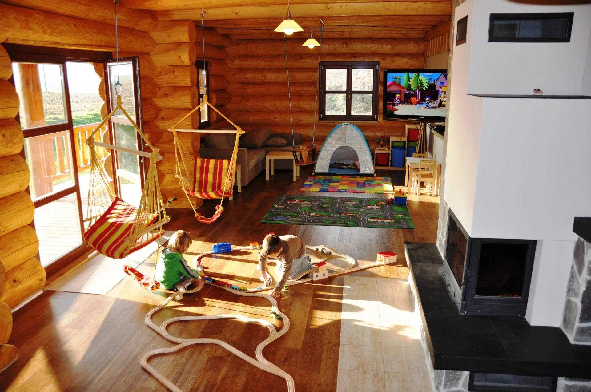 Pro děti jsou k dispozici 3 dětské postýlky, jídelní židličky, přebalovací pulty, nočníky, vanička, zábrany na postel, branky na schodiště, dětský koutek s hračkami, interiérová houpačka, závěsná houpací křesla, venkovní hřiště a trampolína.