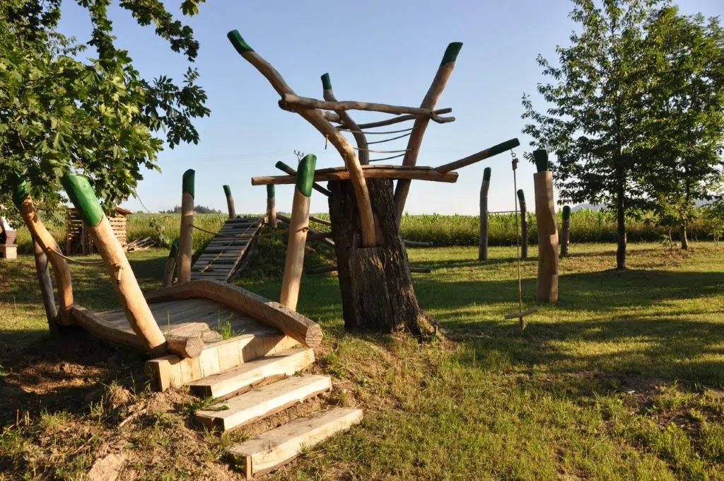 - Dobrodružný les s lezeckým teepee, překážkový kopec, lezecký totem, hrazdy