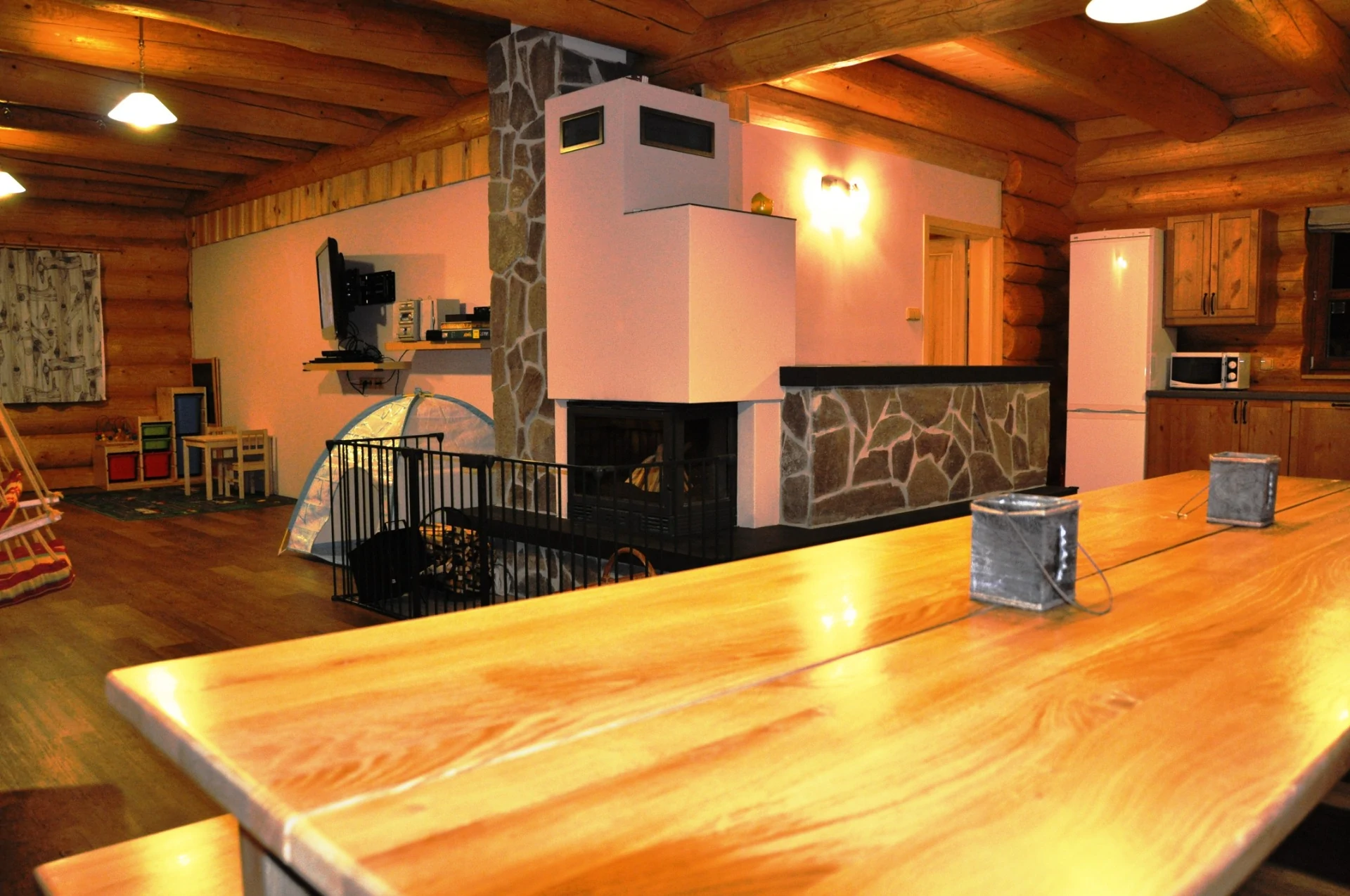 - Společenská místnost s kuchyní, jídelnou a obývacím pokojem s dětským koutkem