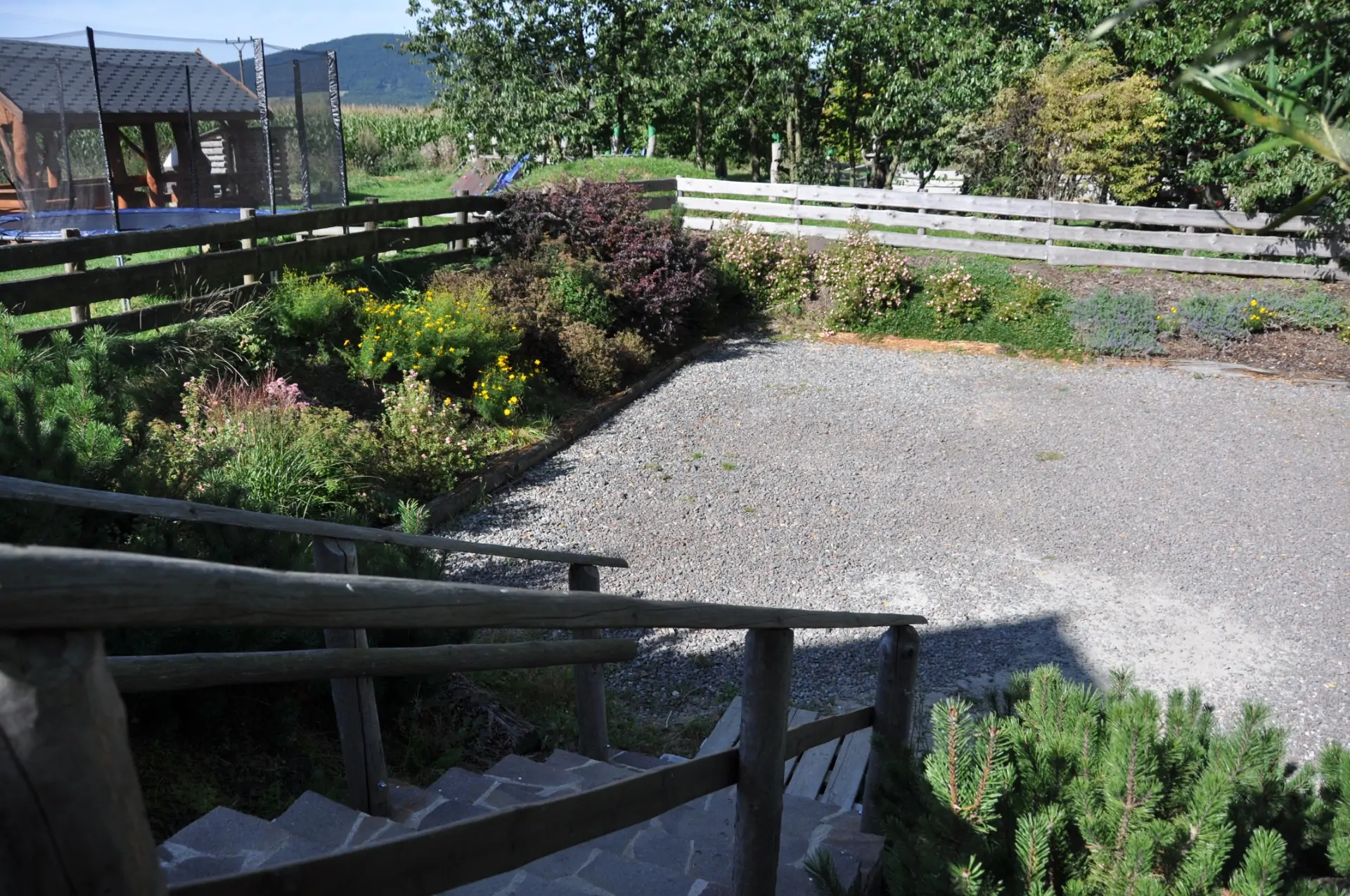 - Oplocený pozemek, parkoviště pro 6 aut, zahrada 2000 m²