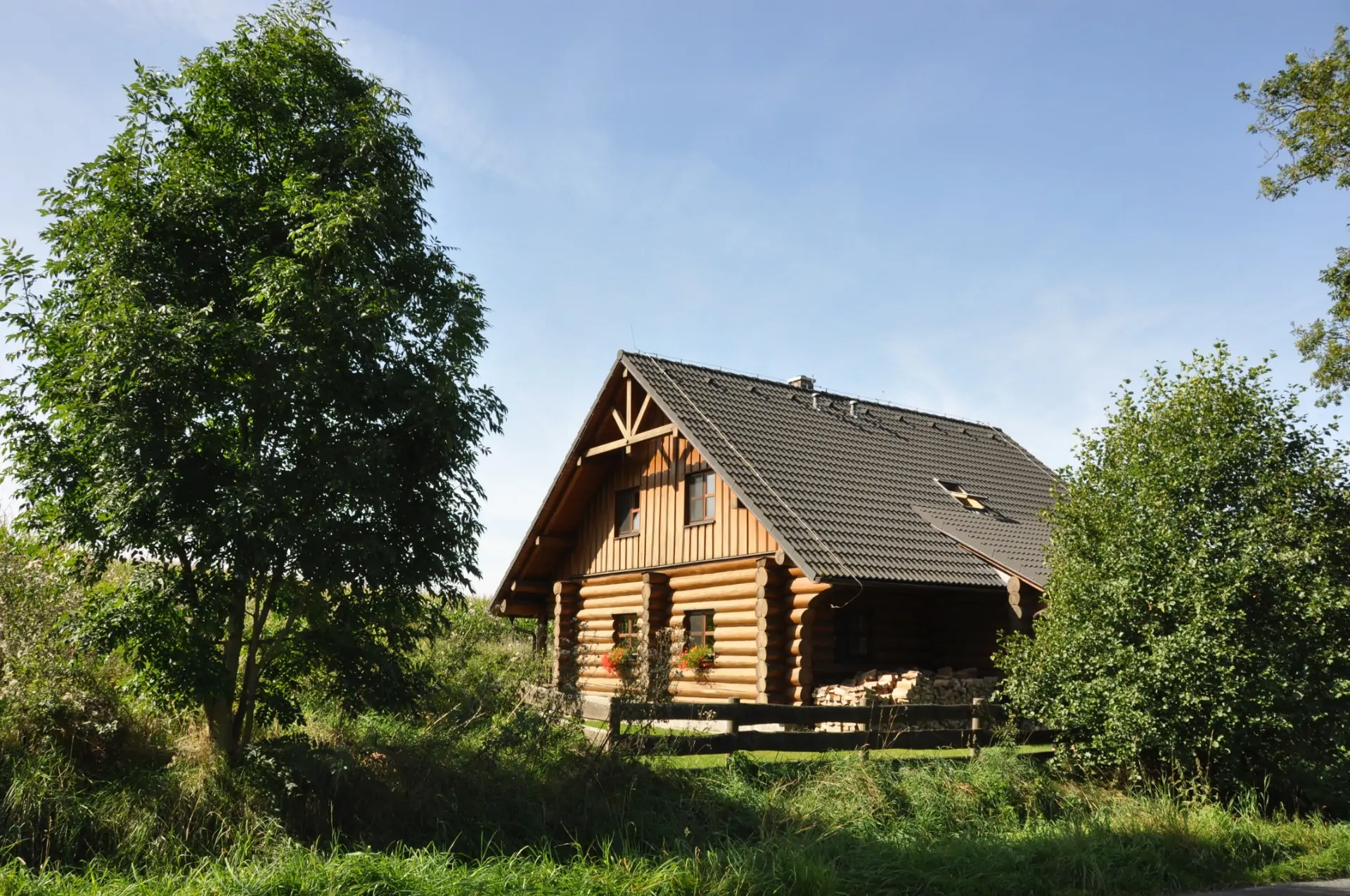 - Chalupa stojí na samotě, oploceno, s travnatou plochou
