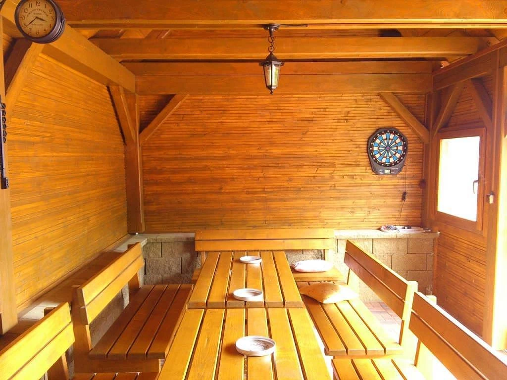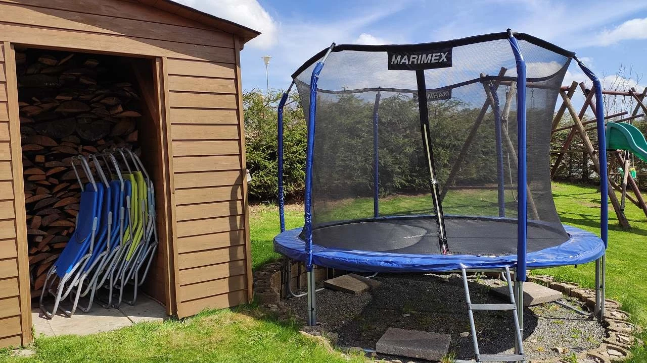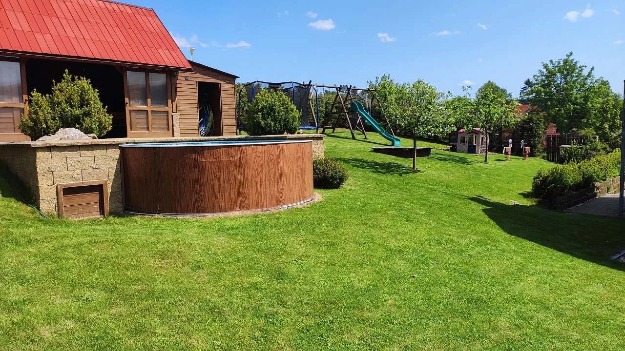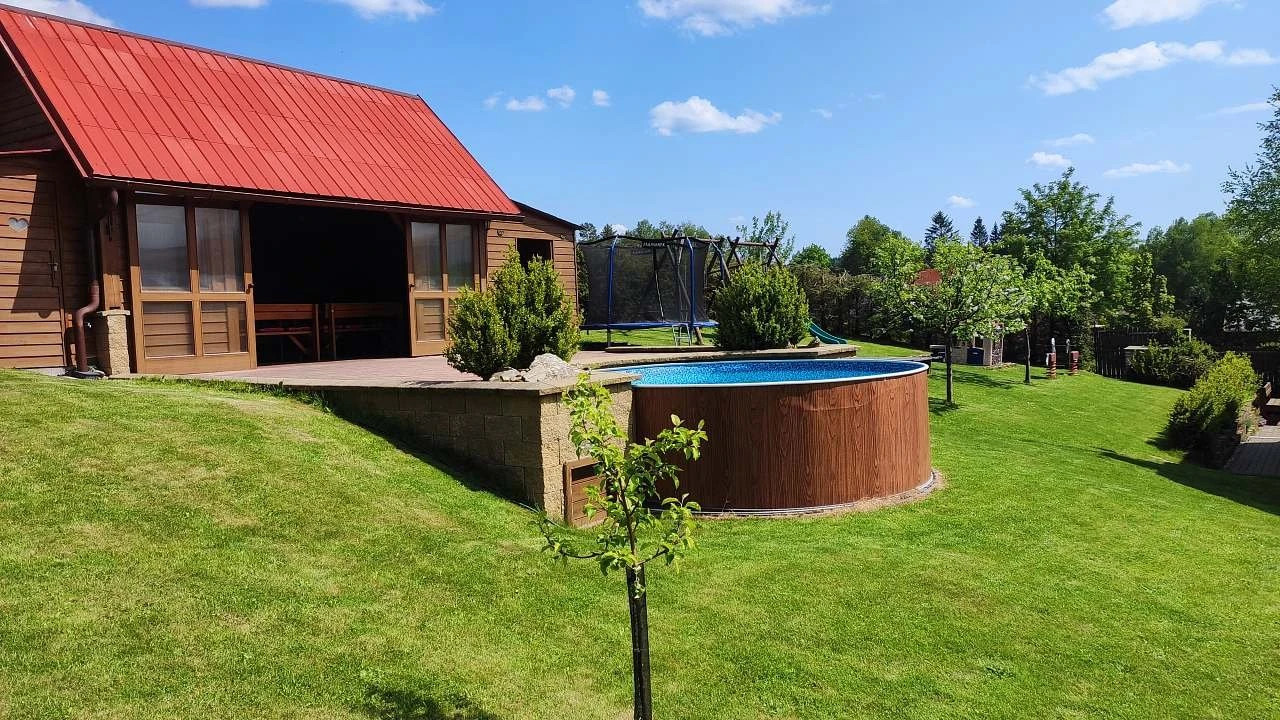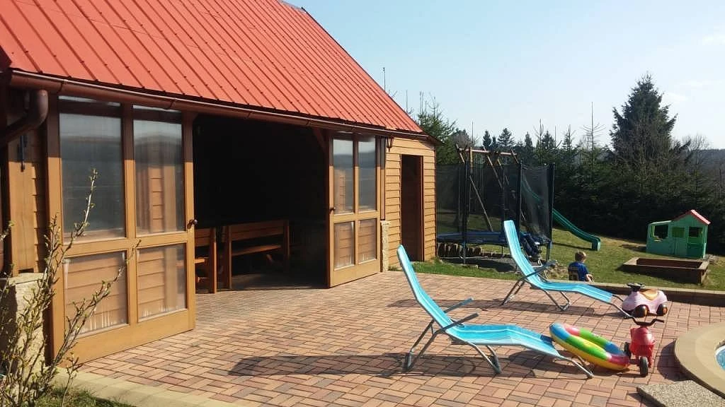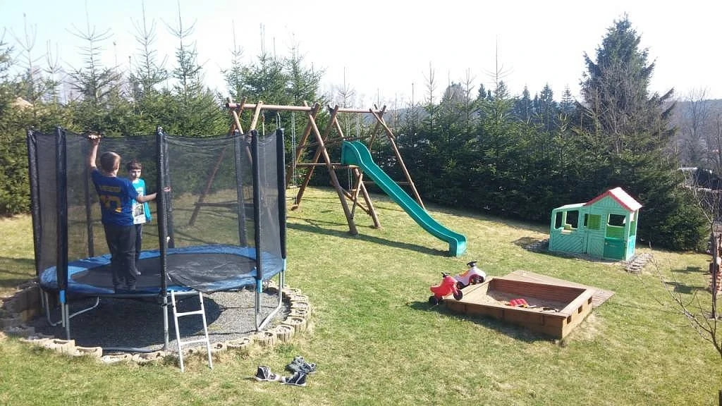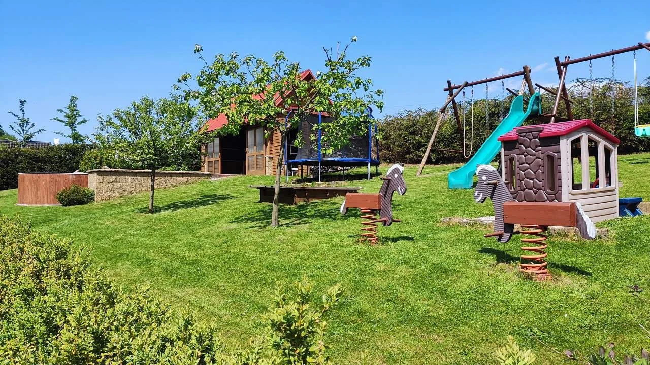 Na zahradě je bazén Ø 3,6 m (v provozu od 25.6. do 1.9.), zastřešené posezení s krbem a grilem, trampolína, houpačky, skluzavka a pískoviště (vše k dispozici od konce dubna do konce října). Pro zábavu jsou k dispozici stolní fotbal a šipky.