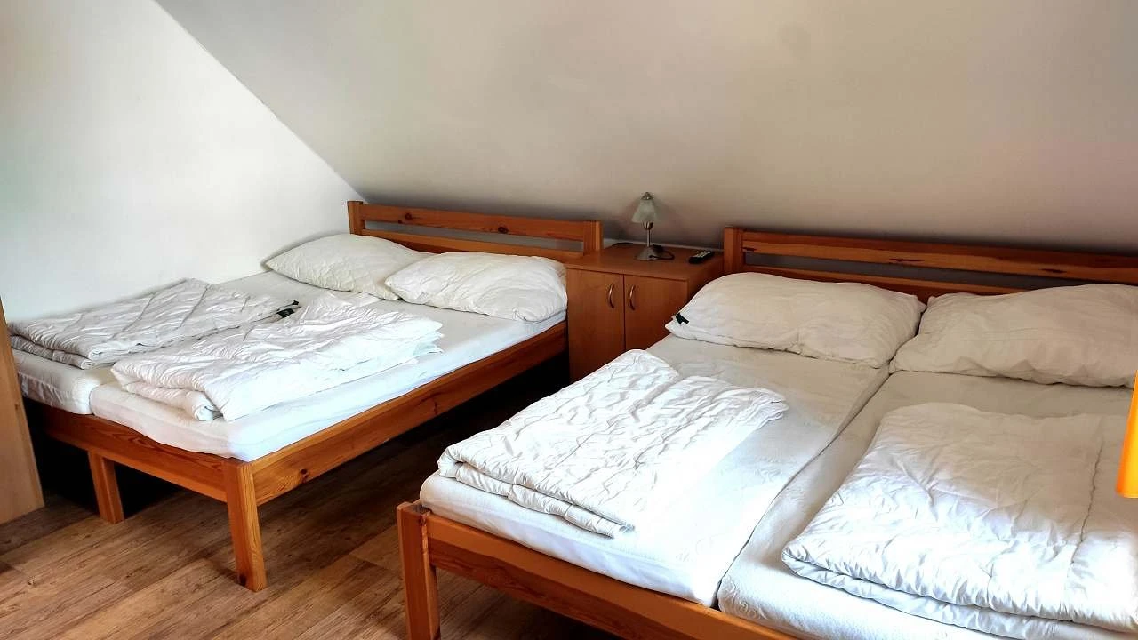 - Čtyřlůžkový pokoj v podkroví: 2 manželské postele