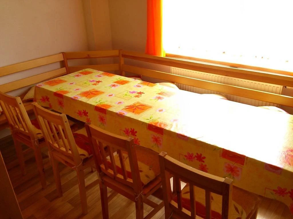K dispozici je společná kuchyně s velkým jídelním stolem, vybavená TV, elektrickým sporákem, mikrovlnnou troubou, varnou konvicí, lednicí a kompletním nádobím.