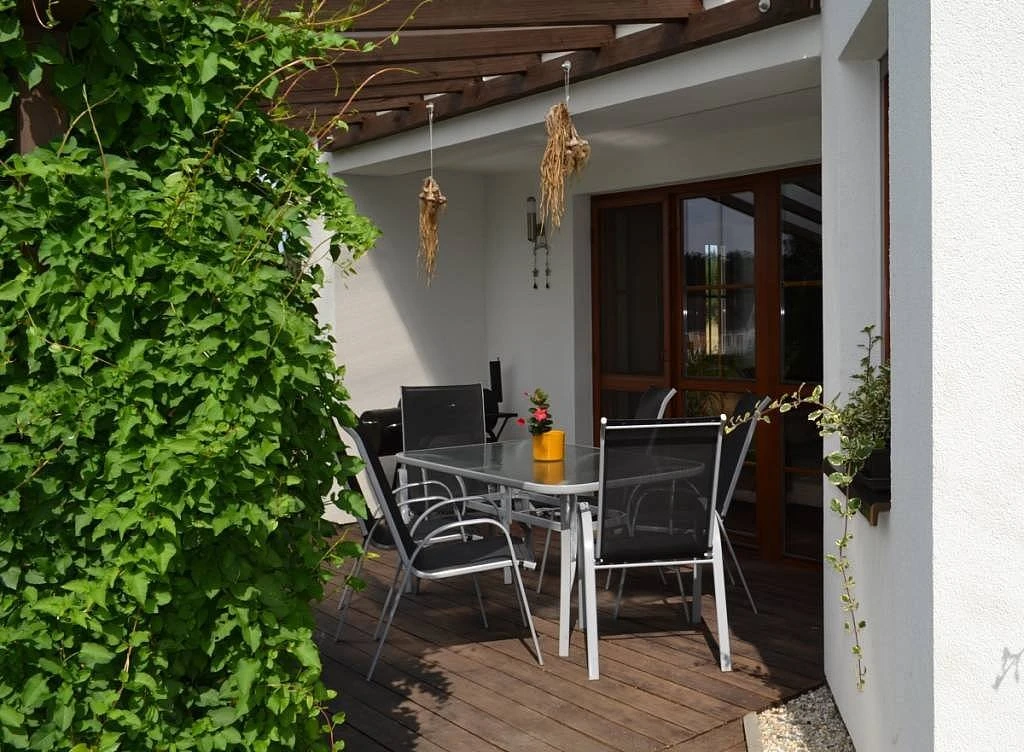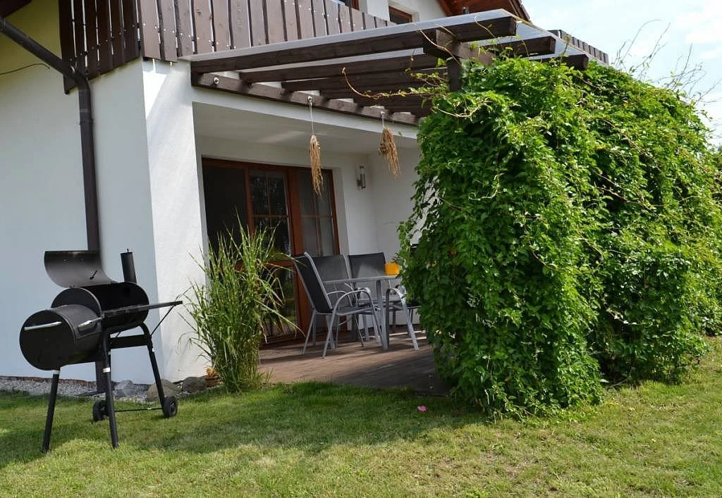 Součástí objektu je venkovní posezení a zastřešená terasa s grilem, který je hostům k dispozici. Na zahradě se nachází bazén (v letních měsících), zahradní nábytek, trampolína, houpačka se skluzavkou a pískoviště pro děti.