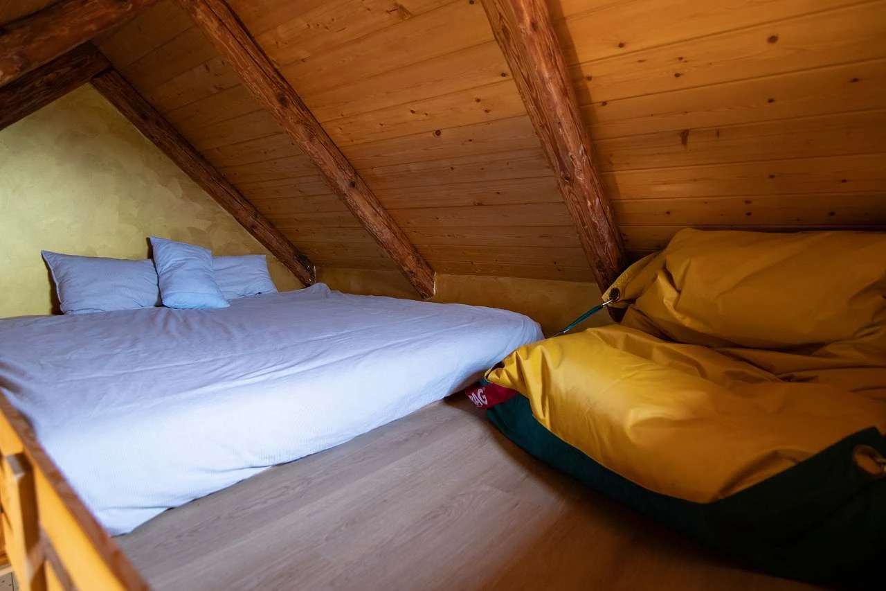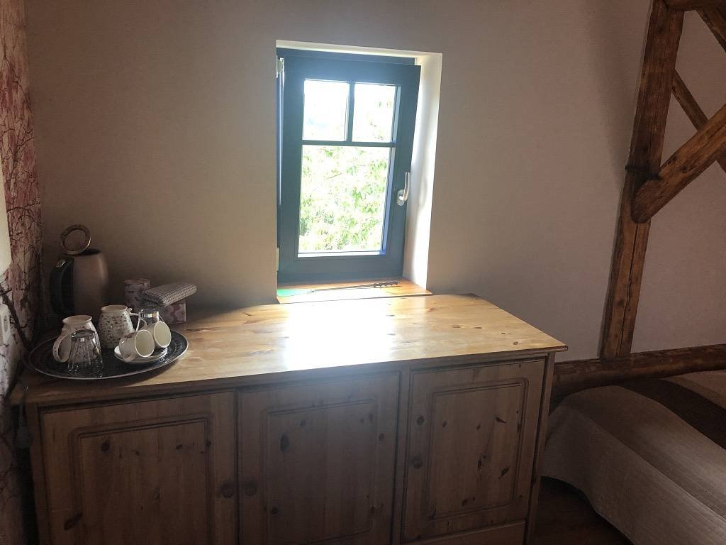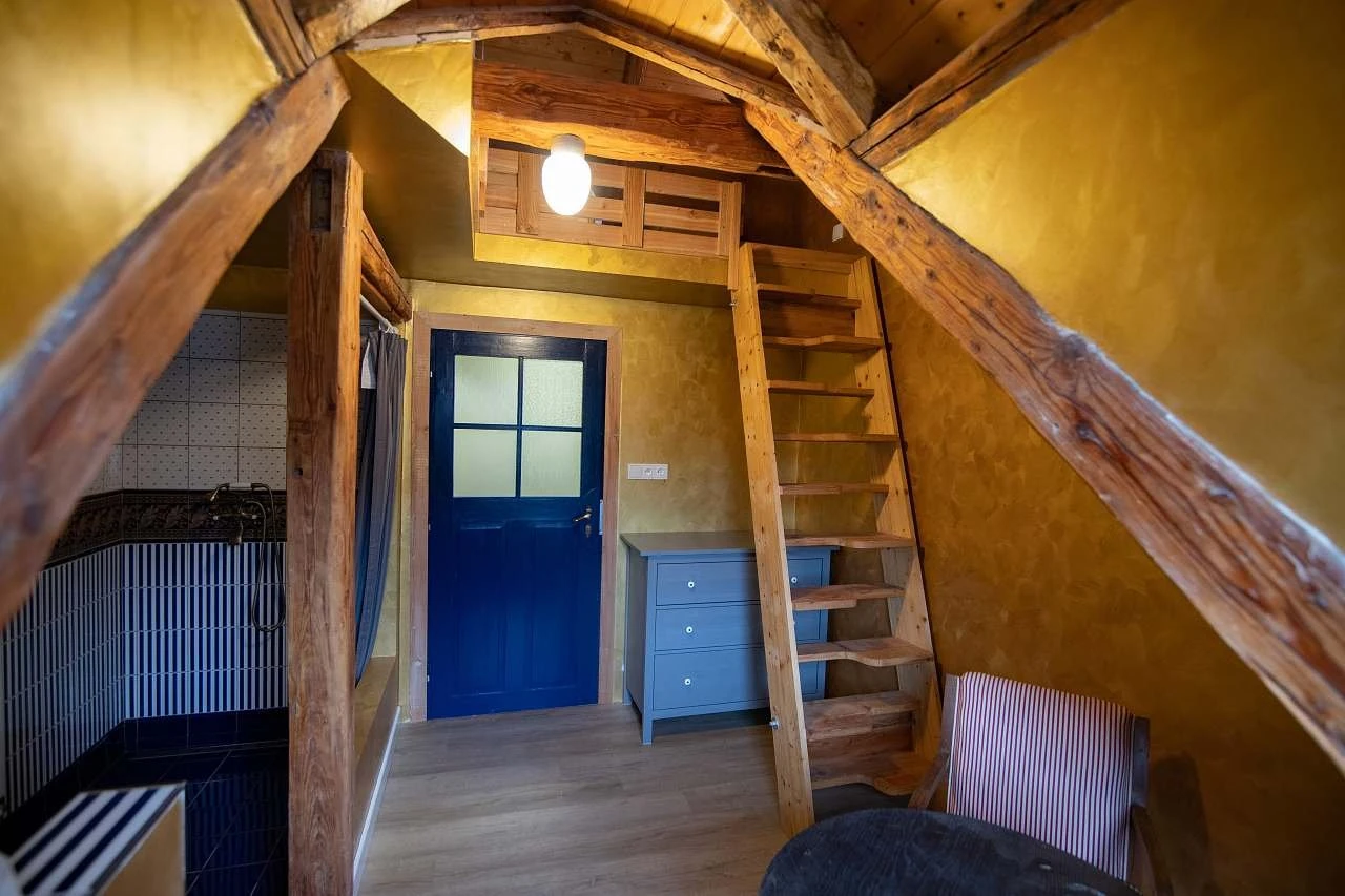 - Vybavení: patrové lůžko 200 × 200 + 140 × 70, vlastní koupelna a WC, varná konvice, hrnečky na kávu a čaj