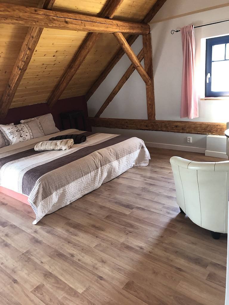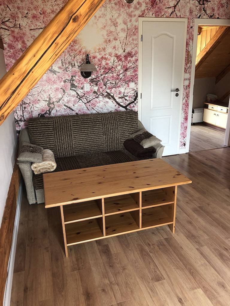 Kapacita: 4 lůžka + 6 přistýlek (max 10 osob)Ložnice: 2 + velká obývací místnost s kuchyníVybavení:Obývací místnost s rozkládací sedačkou 200 × 220Kompletně vybavená kuchyň: velká lednice, trouba, přenosná indukční dvouplotýnka2 samostatné pokoje: manželská postel s možností rozdělení na 2 postele + spací patro (180 × 200)Samostatné WC a koupelna s vanou a sprchovým koutemCena: pevná 4 000 Kč/den (nezávisle na počtu osob)Dlouhodobé pobyty mimo sezonu: cena dohodou