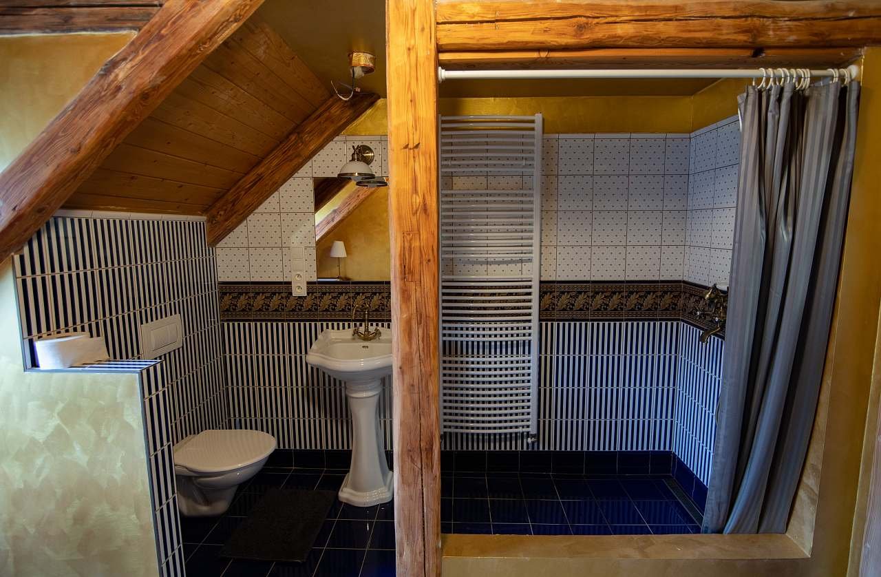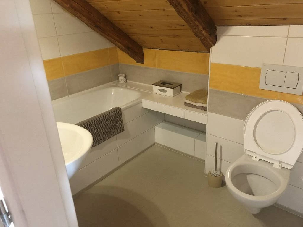 - Samostatné WC a koupelna s vanou a sprchovým koutem