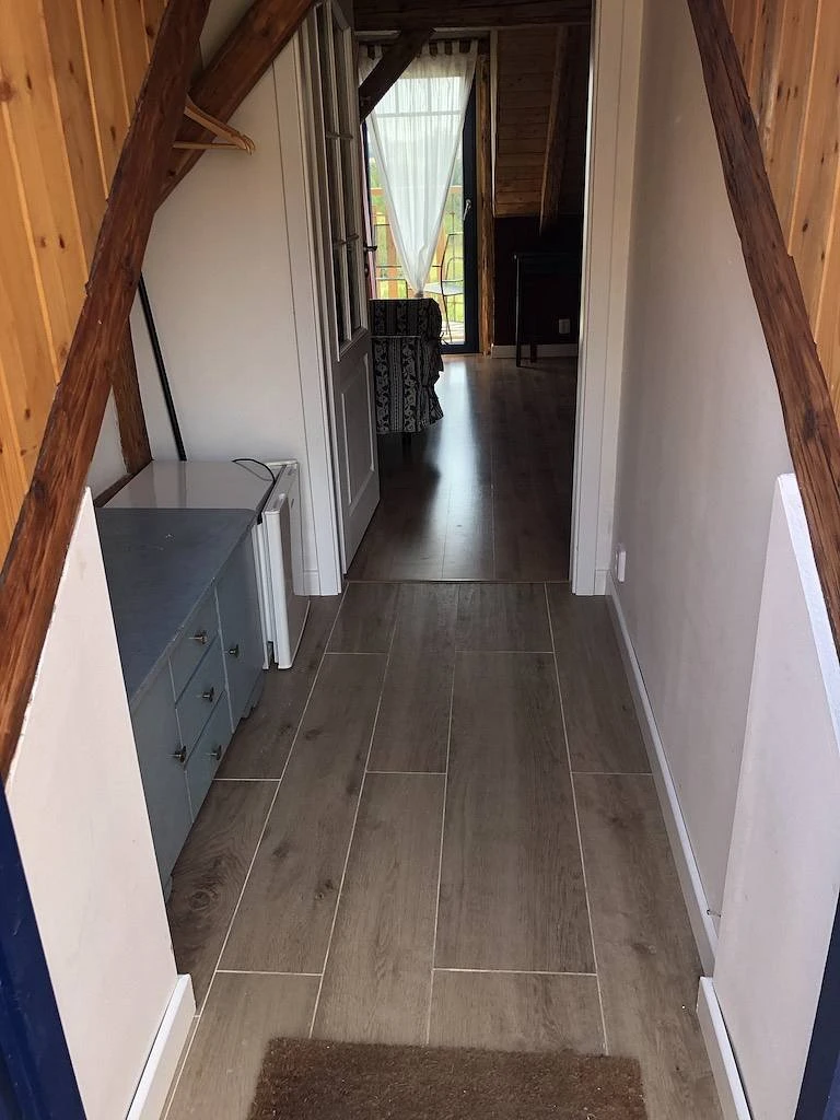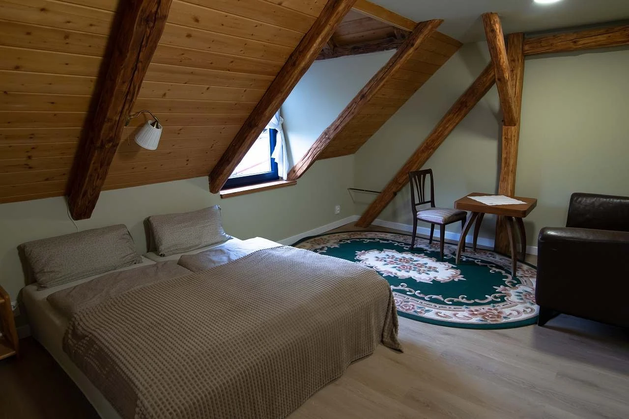- Vybavení: 2 postele (možnost spojit na manželskou nebo oddělit), rozkládací křeslo 100 × 200, koupelna s vanou, WC, mini lednička, varná konvice