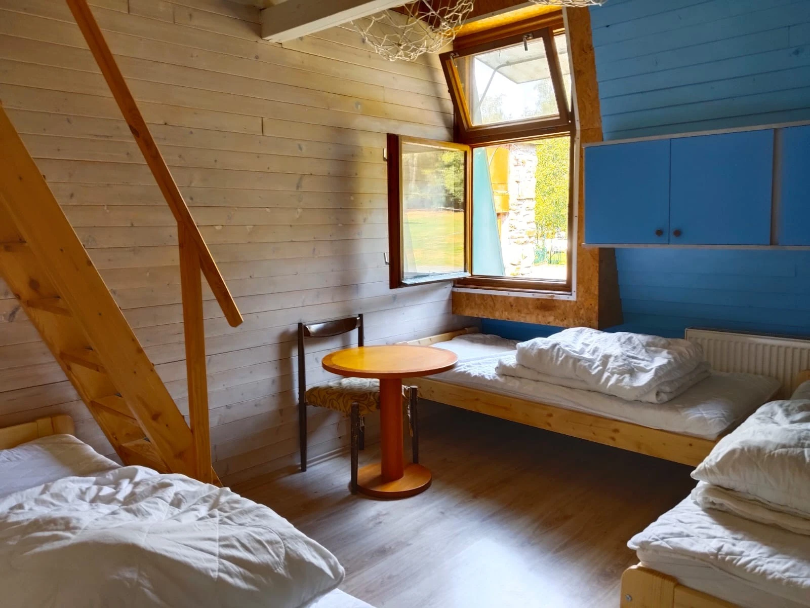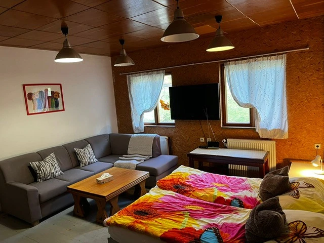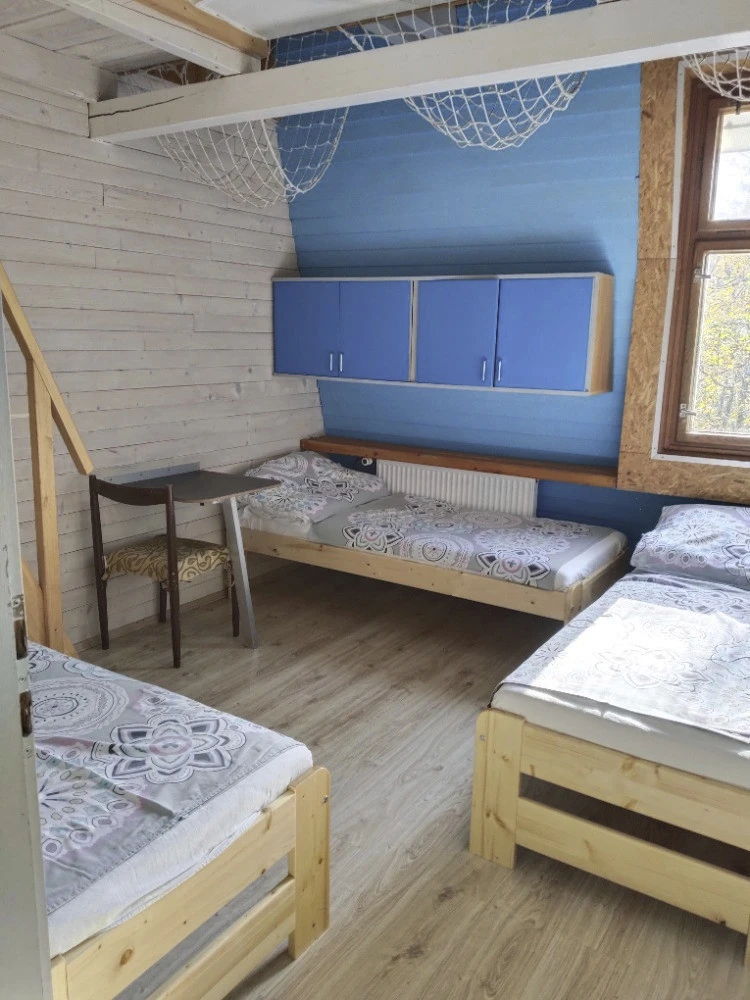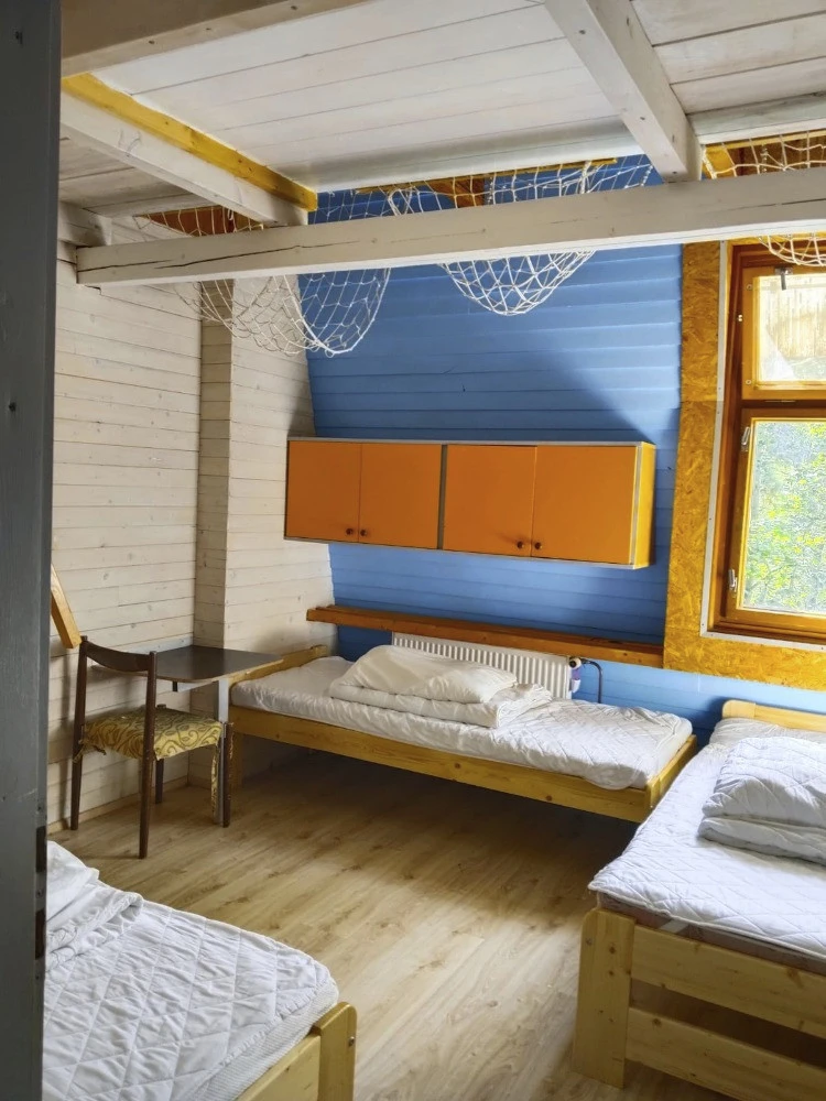 7× Pětilůžkový mezonetový pokoj (Pětilůžkový pokoj)Základní informace5 lůžek1 ložniceLožnice:5× Jednolůžková postel (možnost spojit do dvoulůžka)VybaveníInternet WiFi, Společná koupelna, Společná toaleta(1. 1. – 31. 12.)300 Kč - 1 200 Kč osoba / noc min. 1 osoba, min. 1 nocCena se pohybuje v závislosti na typu ubytování, délce pobytu a počtu osob – cena se stanovuje po odeslání předběžné rezervace.
