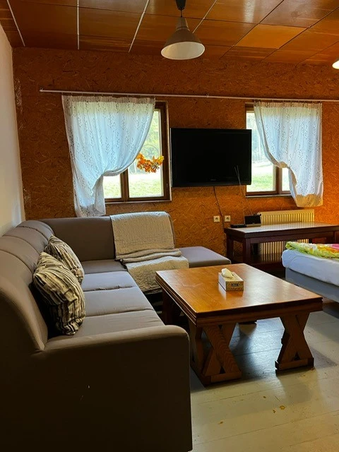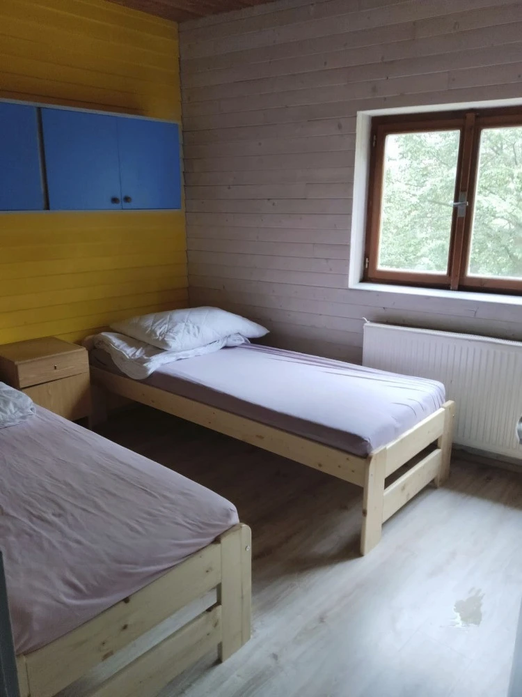 1× 7-lůžkový pokoj (Sedmilůžkový pokoj)Základní informace7 lůžek1 ložniceLožnice:3× Jednolůžková postel, 2× Patrová postelVybaveníInternet WiFi, Společná koupelna, Společná toaleta(1. 1. – 31. 12.)300 Kč - 1 200 Kč osoba / noc min. 1 osoba, min. 1 nocCena se pohybuje v závislosti na typu ubytování, délce pobytu a počtu osob – cena se stanovuje po odeslání předběžné rezervace.