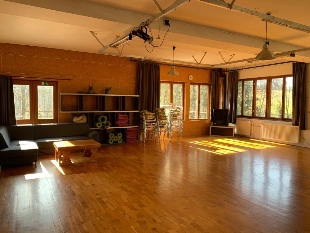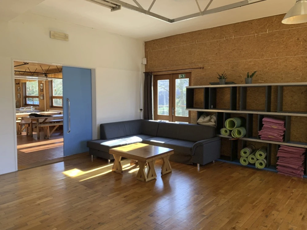Pro společné aktivity slouží 4 společenské místnosti. Hlavní společenská místnost v přízemí o rozměrech 9 × 9 m je vybavena projektorem a zvukovou aparaturou a je propojena s jídelnou. Další společenská místnost se stejnými rozměry se nachází v podkroví a zároveň nabízí 18 lůžek. K dispozici je také menší klubovna (teamovna) určená zejména pro pedagogy a organizátory. V případě potřeby lze zapůjčit školící vybavení (flipcharty, TV, relaxační matrace apod.).