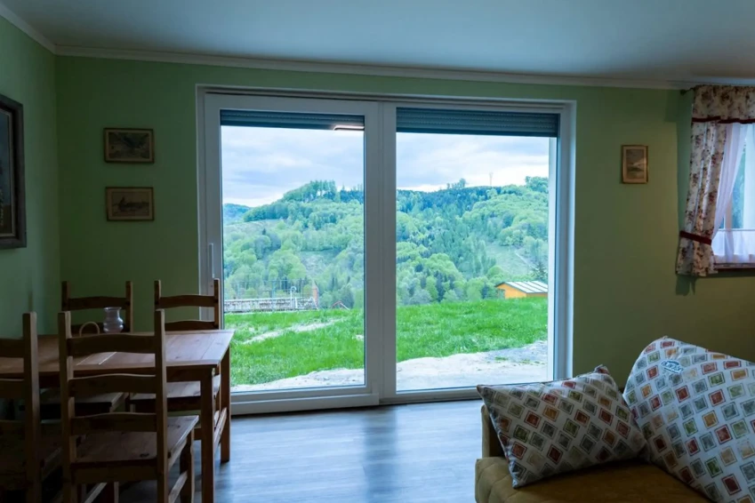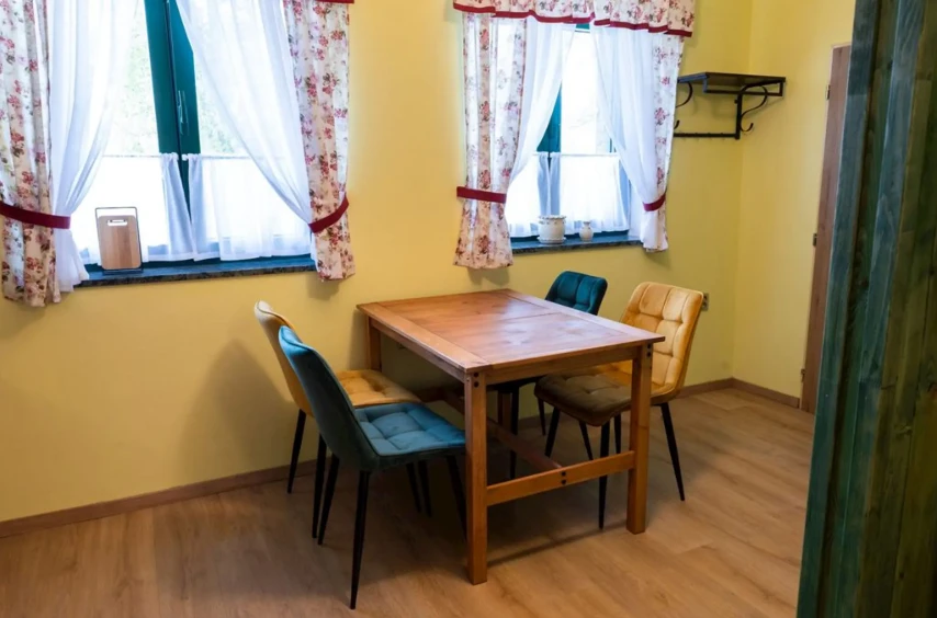 Tento apartmán se nachází v hlavní budově Rekreačního střediska Rajnošky v obci Rajnochovice. Je ideální pro rodiny nebo menší skupiny, které hledají komfortní a prostorné ubytování.