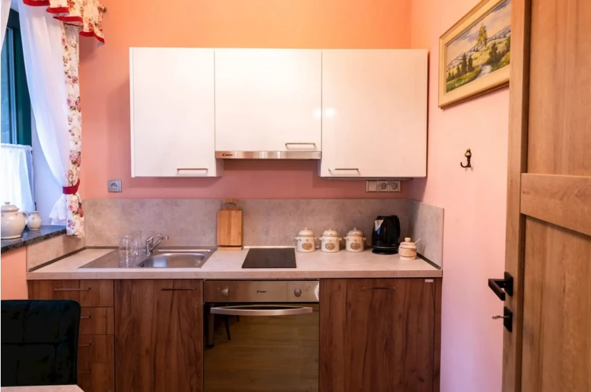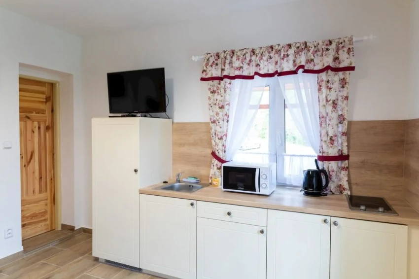 Kuchyň: Základně vybavená kuchyň pro přípravu vlastních jídel.