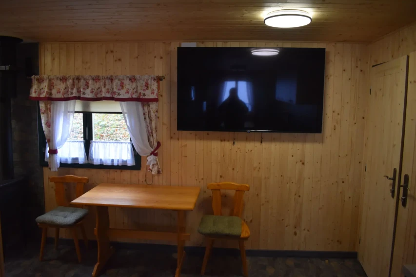 Juhyňka je vybavena manželskou postelí a dvěma přistýlkami na rozkládacím gauči, kuchyní, koupelnou a toaletou.