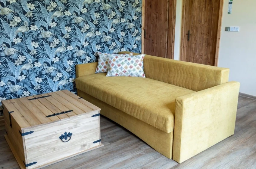 Obývací pokoj: Rozkládací gauč vhodný jako přistýlka pro 2 osoby.