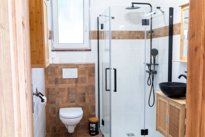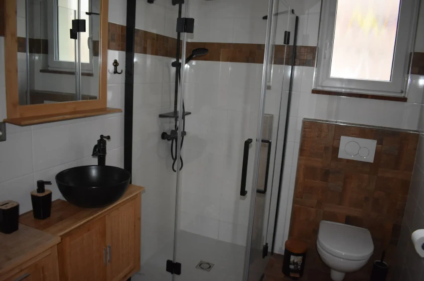 Sociální zařízení: Koupelna se sprchovým koutem a samostatné WC.