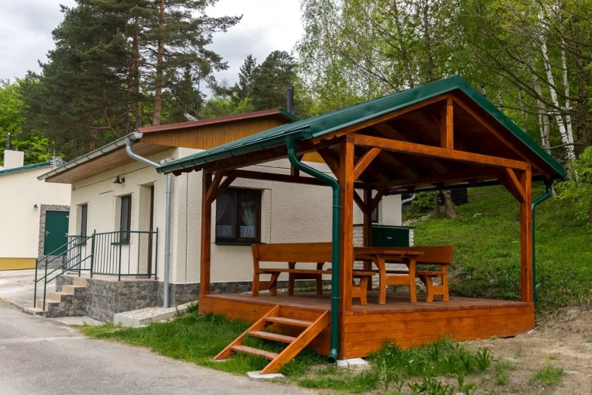 | Chatka č. 1–6 (roubenka) | 1 500 | 2 | 2 | Každá chatka se 2 patrovými postelemi, kuchyňský kout |