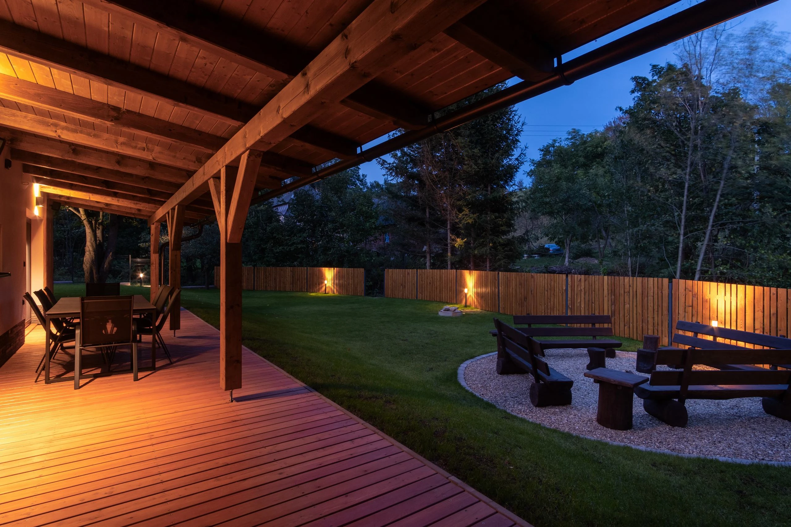 Součástí areálu je společenská místnost s krbovými kamny, šipkami a stolním fotbálkem, finská sauna, terasa, ohniště, dětské hřiště a uzamykatelná místnost s vysoušeči bot. Každý apartmán má vlastní kuchyň a koupelnu. Parkování je zajištěno přímo u objektu a přímo před ubytováním se nachází autobusová zastávka. V okolí najdete možnosti pro turistiku, cyklistiku, zimní sporty i relaxaci.