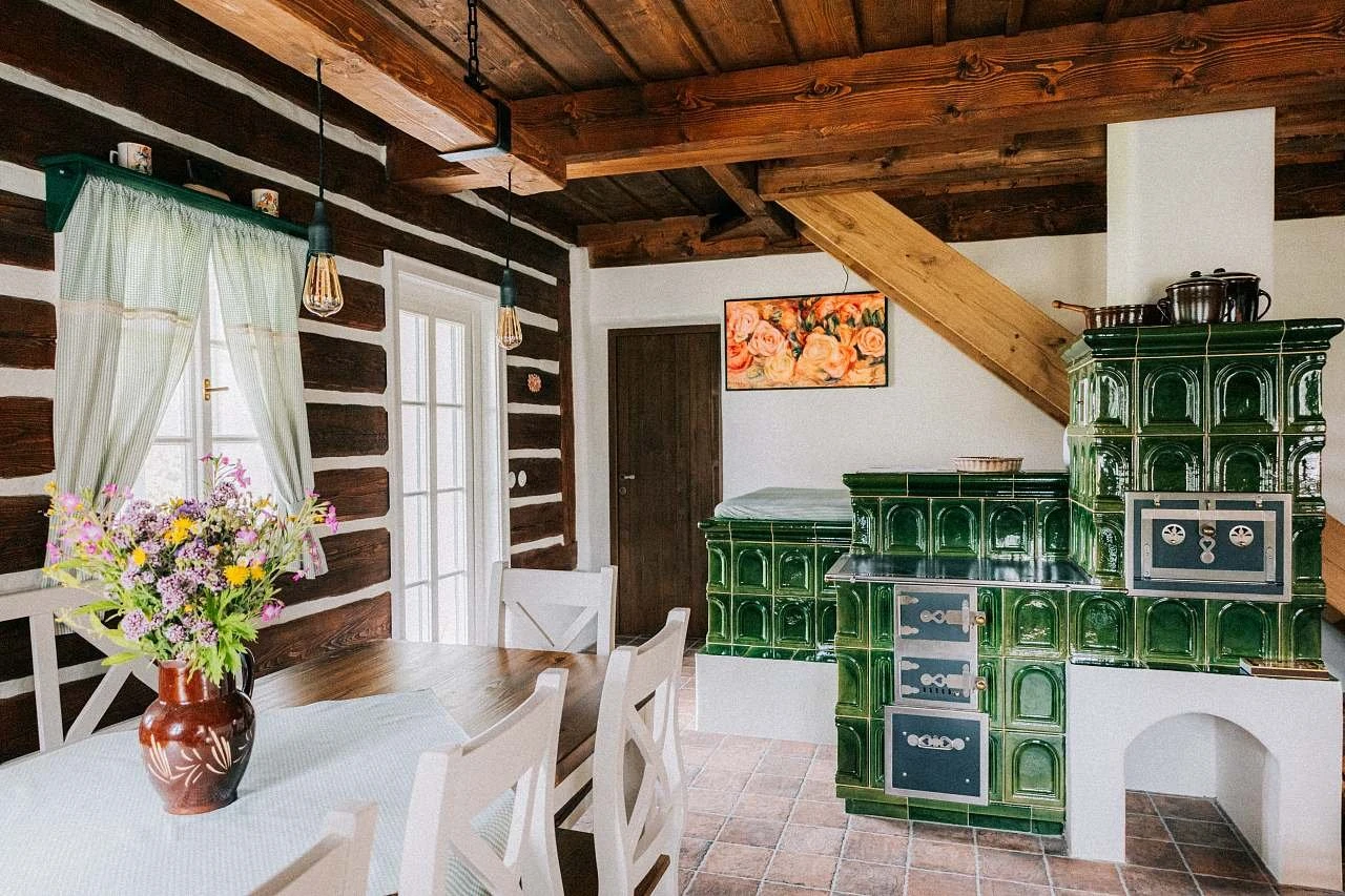 Kapacita:8 lůžek + 1 přistýlkaLožnice: 3 (1 × dvoulůžková, 2 × třílůžkové)Přistýlka: místo na peci v obývacím pokojiDětská postýlka k dispoziciKuchyně:Plně vybavená: trouba, vařič, kávovar Nespresso (10 kapslí v ceně)Základní suroviny pro vařeníKoupelny a WC:2 koupelny s WC
