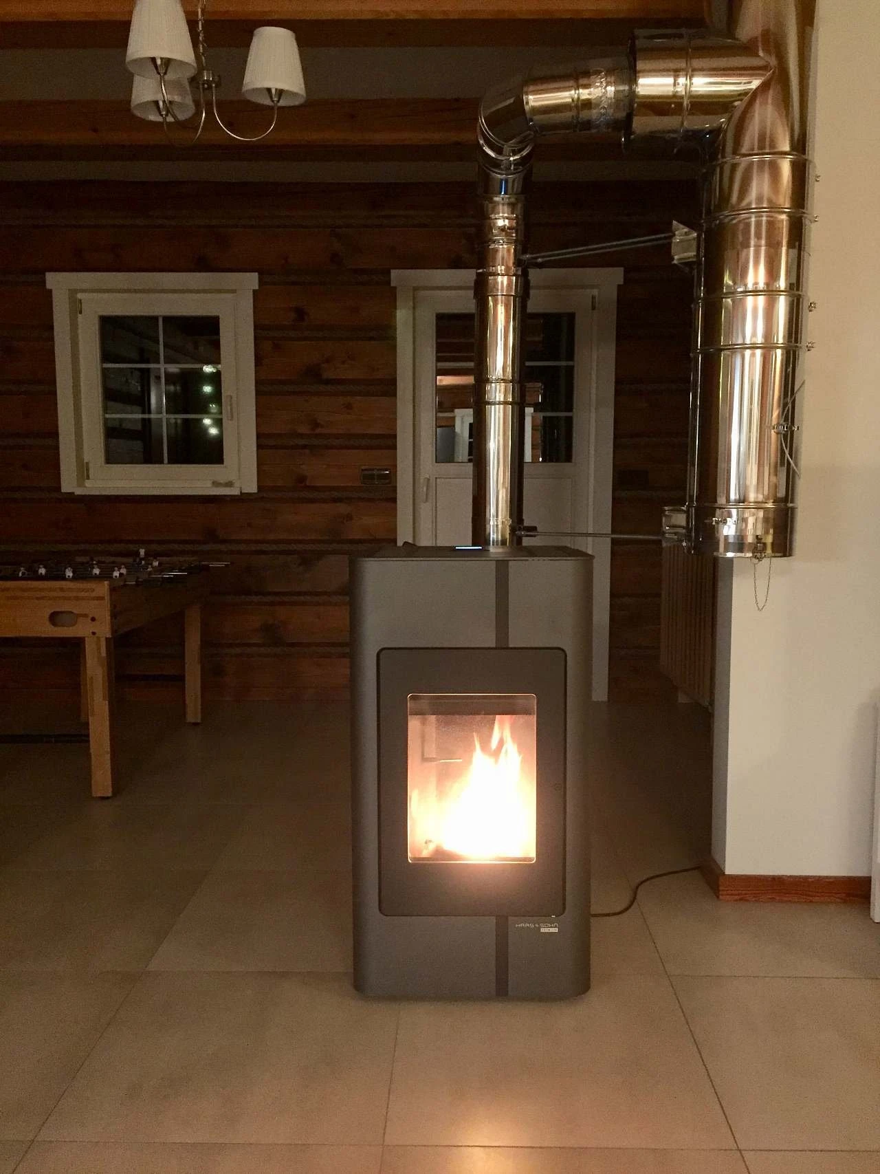 Vytápění: podlahové topení + krbová kamna na peletky.