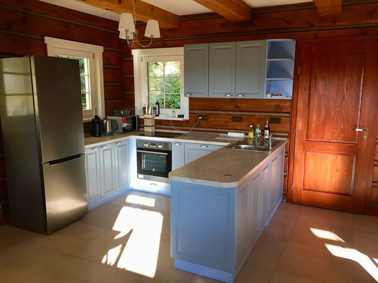 Má 3 ložnice a celkem 8 lůžek. Uvnitř je krb, podlahové vytápění, Wi-Fi a TV. Součástí objektu je finská sauna a vířivka.